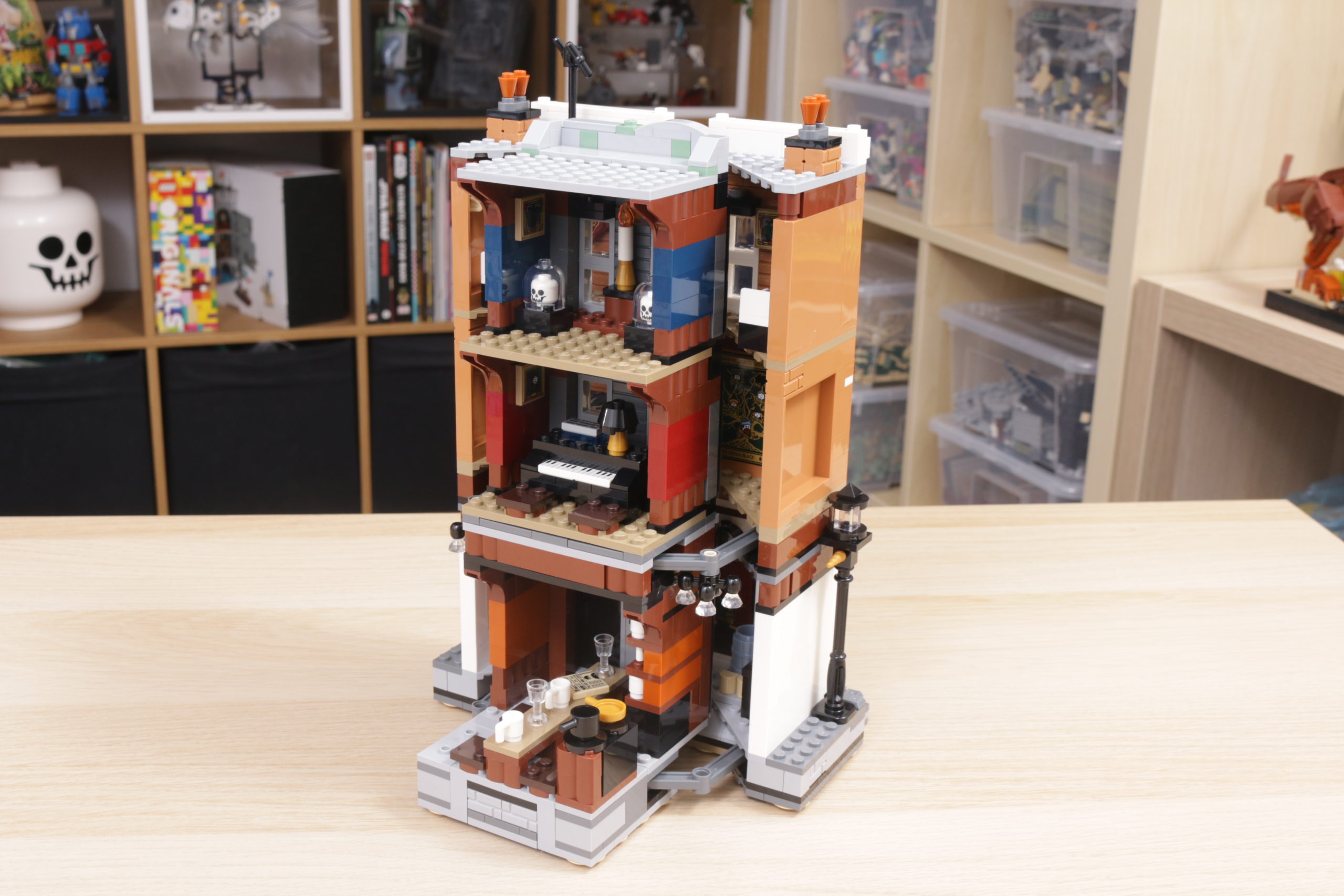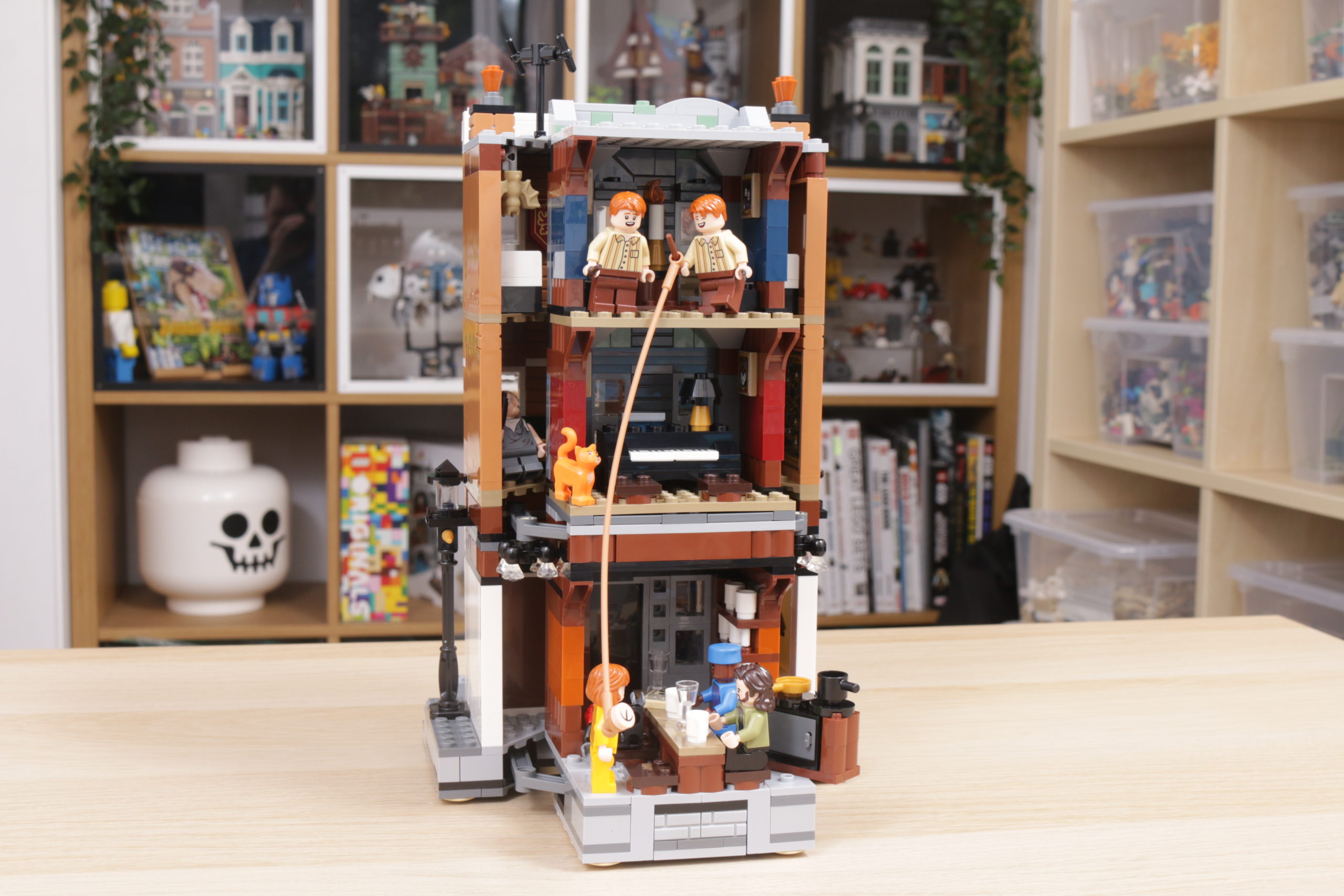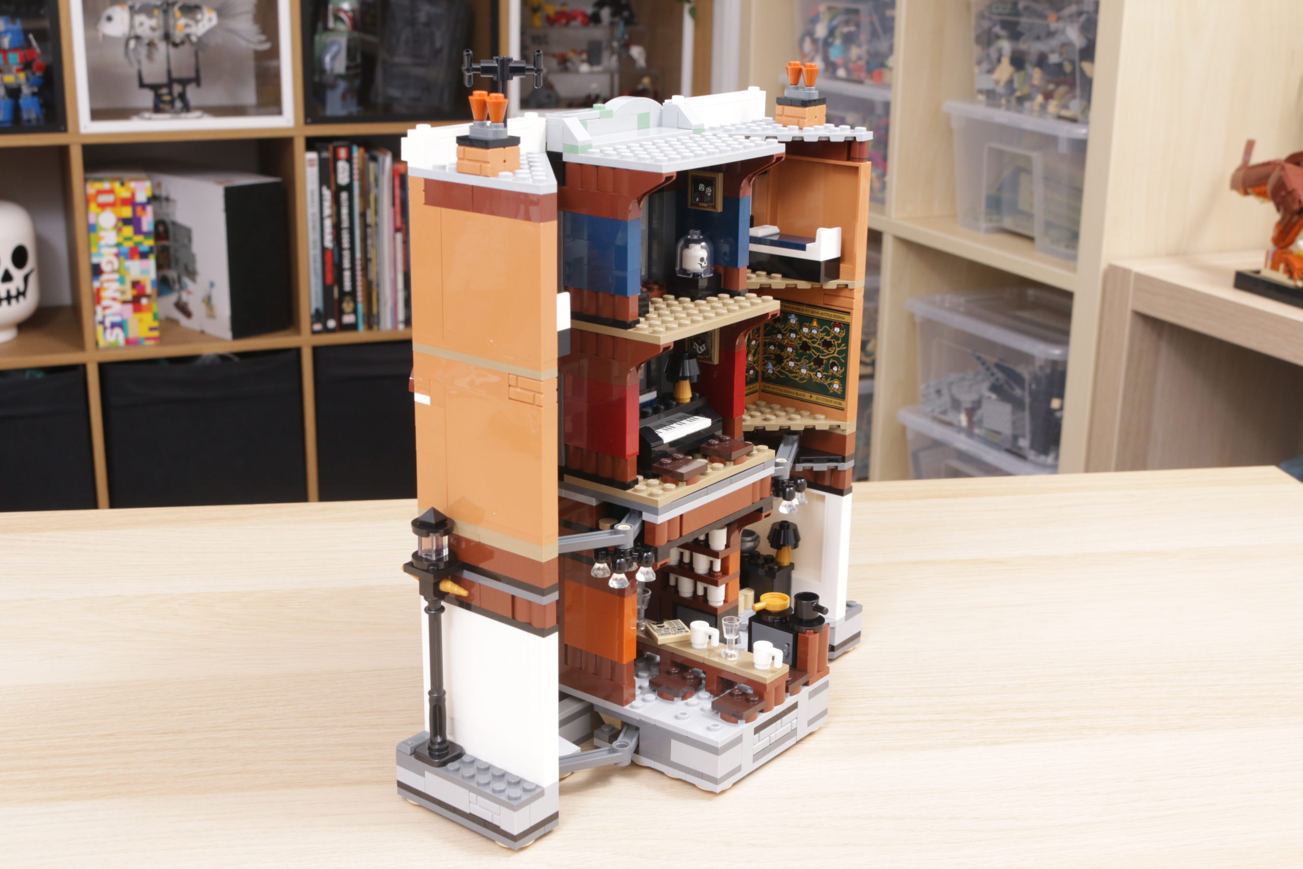 Es una característica relativamente simple, muy bien diseñada tanto en concepto como en la práctica, y esa simplicidad ayuda a garantizar que también sea estructuralmente sólida: tire de las farolas de cada lado para sacar 12 Grimmauld Place, o junte las dos terrazas exteriores para volver a empujarlo hacia adentro, sin esfuerzo y con suavidad.