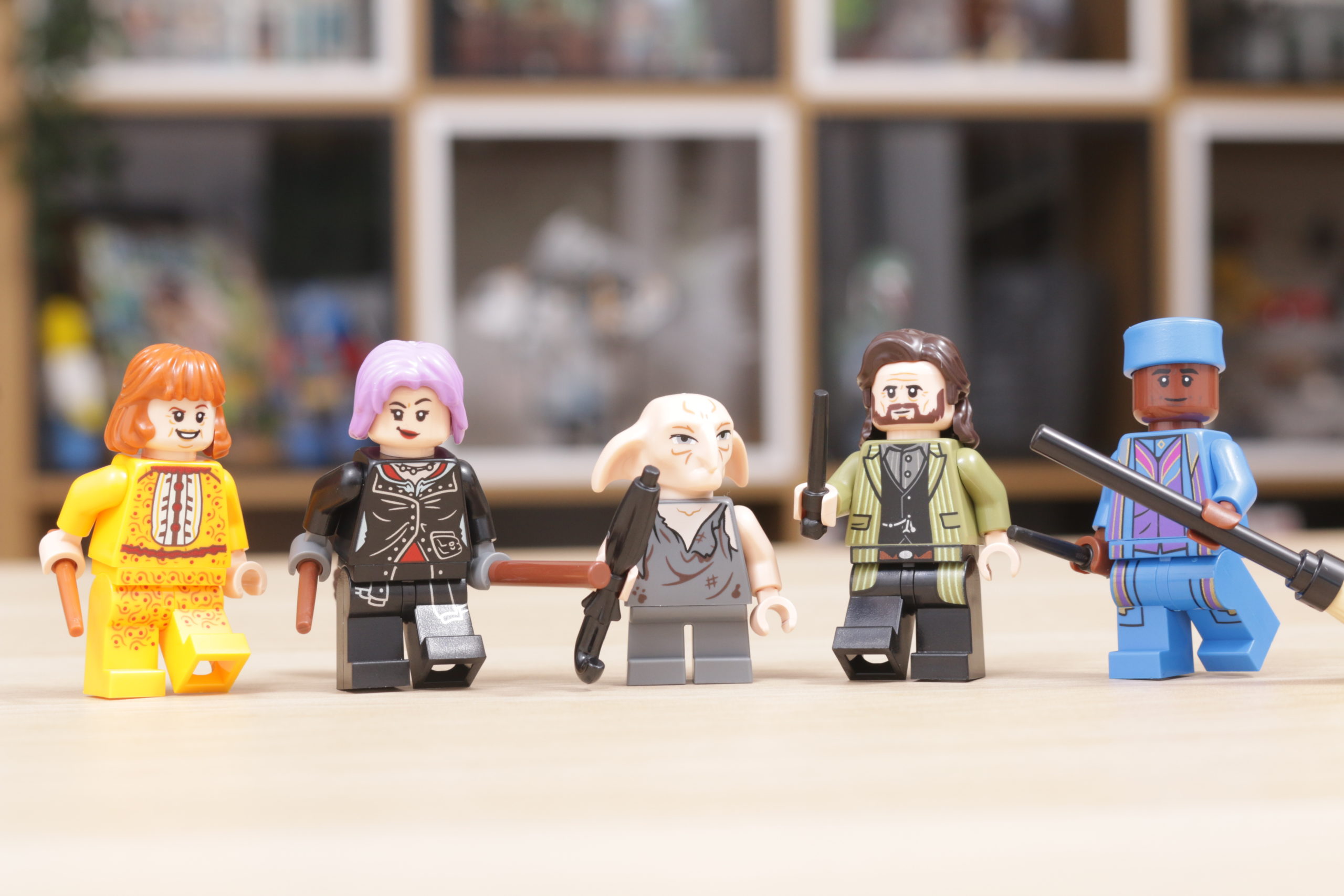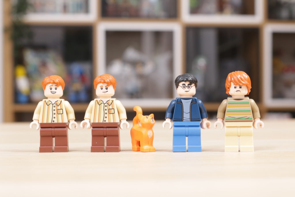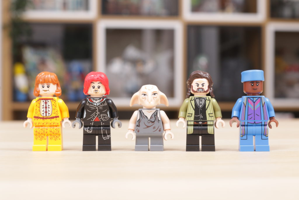 …y 76408 12 Grimmauld Place está repleto de ellos. Se incluyen nueve importantes en el conjunto, a saber: Harry Potter, Ron Weasley, Sirius Black, Nymphadora Tonks, Kreacher, Molly Weasley, Fred Weasley, George Weasley y Kingsley Shacklebolt. A ellos se une el gato de Hermione, Crookshanks.
