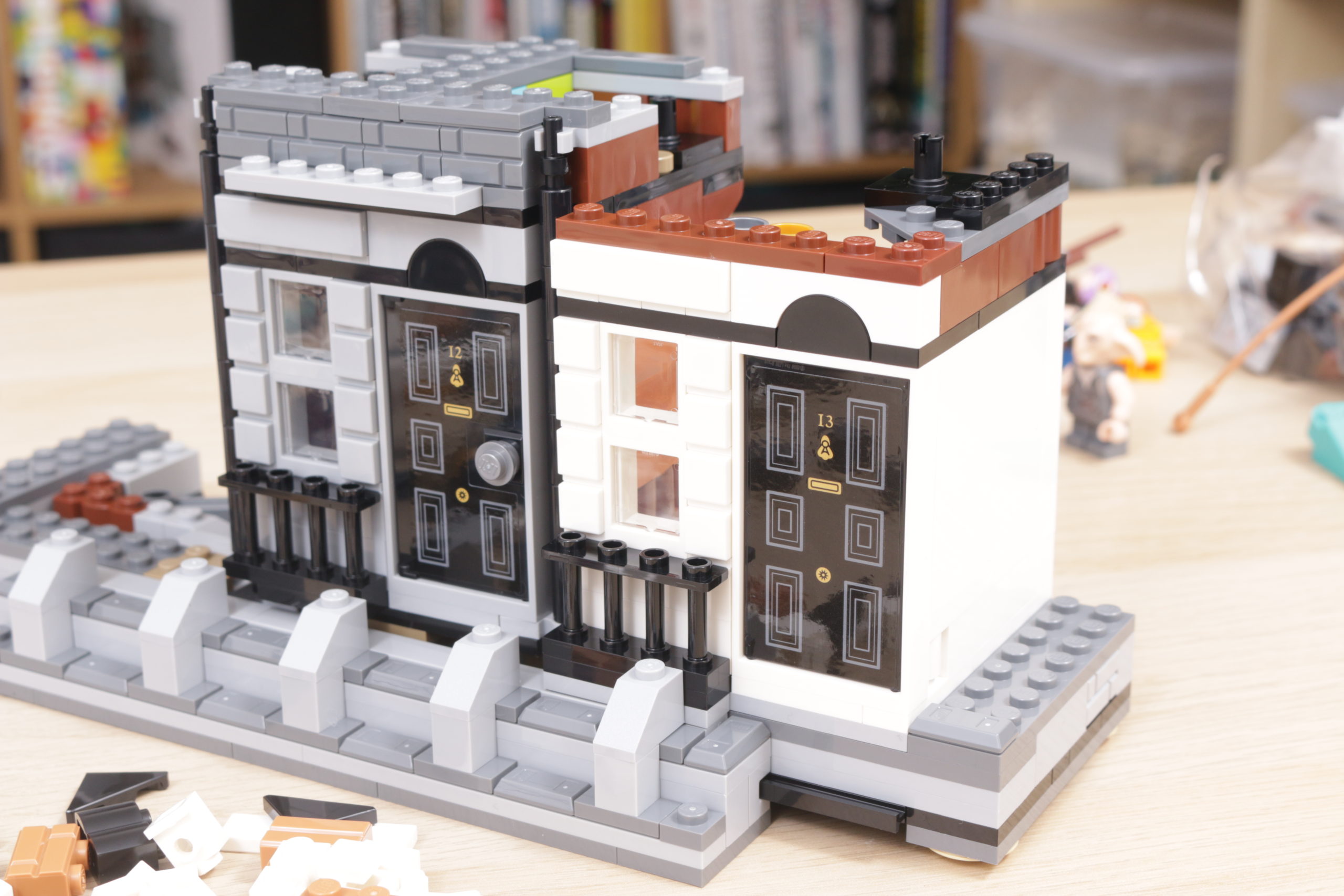 76408 12 Grimmauld Place no solo ofrece una cantidad considerable de minifiguras y un modelo de casa de muñecas más que decente que equilibra perfectamente el diseño exterior con el juego interior, sino que también, de manera crucial y sorprendente, aparece y desaparece entre las propiedades vecinas, al igual que en el libro y película, como magia.