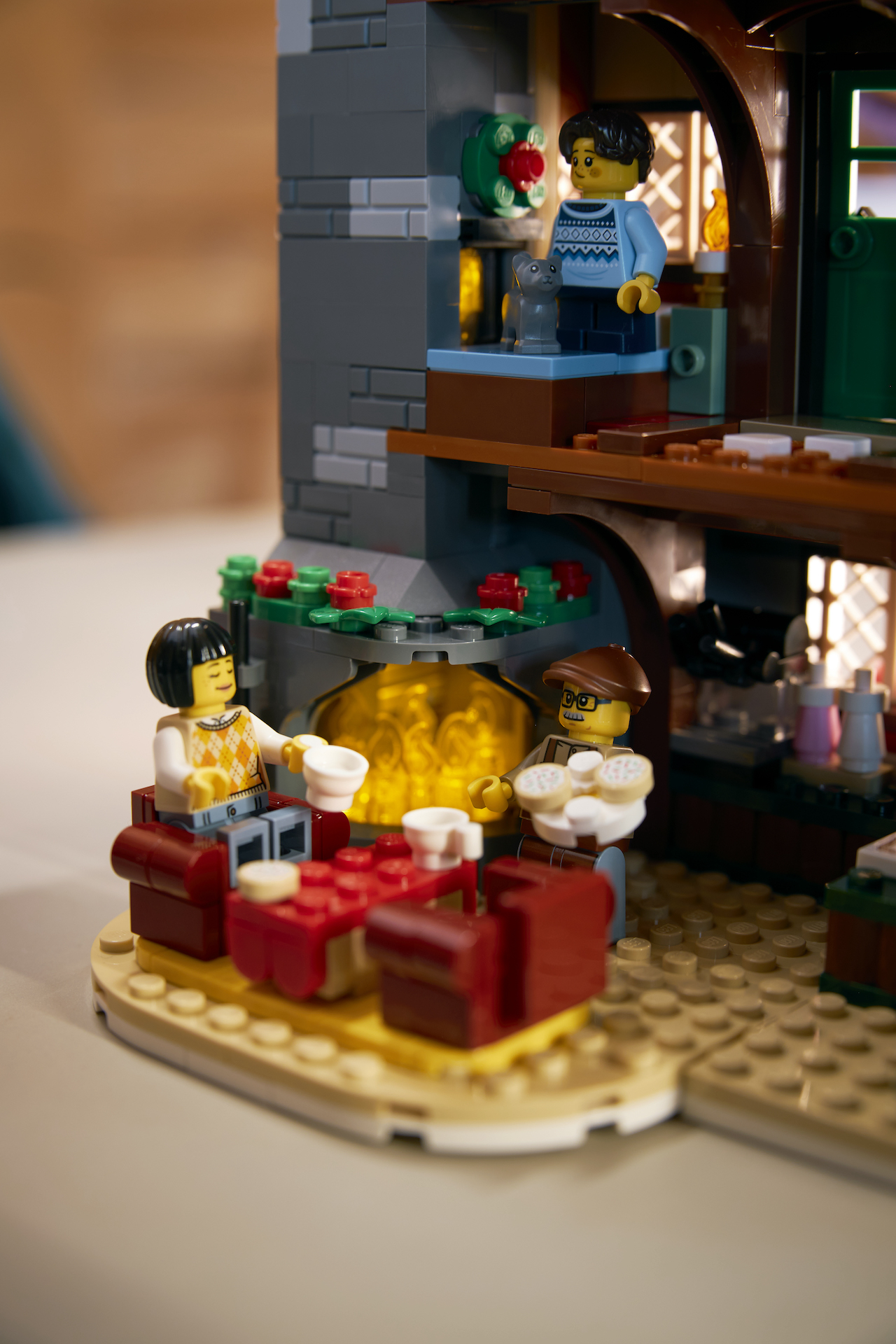 Incluye cinco minifiguras (dos empleados y tres invitados) y muchos accesorios invernales para ambientar la escena. Desde tostar malvaviscos en una fogata hasta decorar los pasillos con decoración LEGO roja y verde, hay abundantes adornos festivos para que disfrutes tanto tú como las minifiguras.