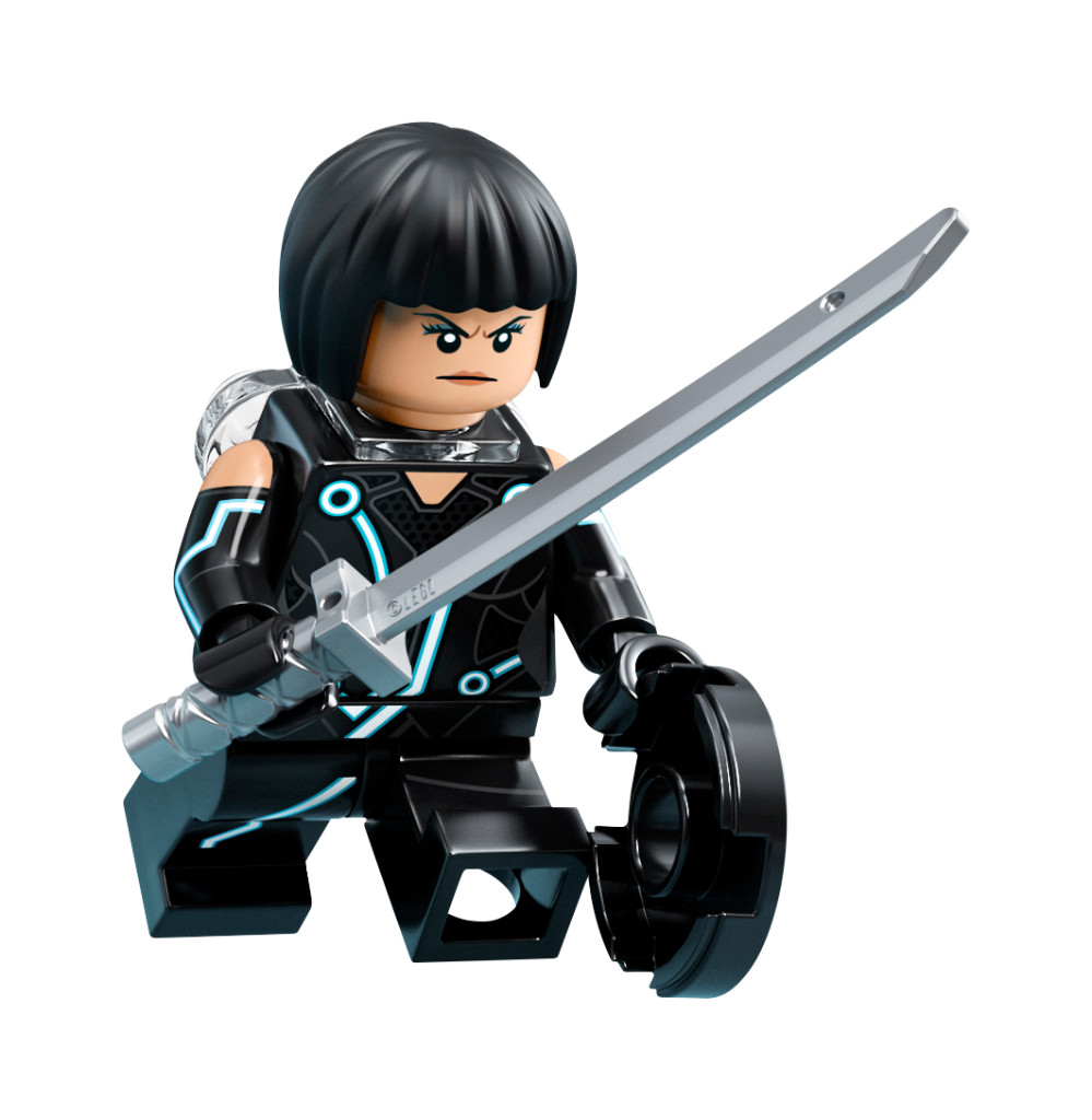• Los elementos accesorios incluyen los discos de identidad azules de Sam Flynn y Quorra y los 2 discos de identidad naranjas de Rinzler. Se adjunta a la parte posterior de cada minifigura.