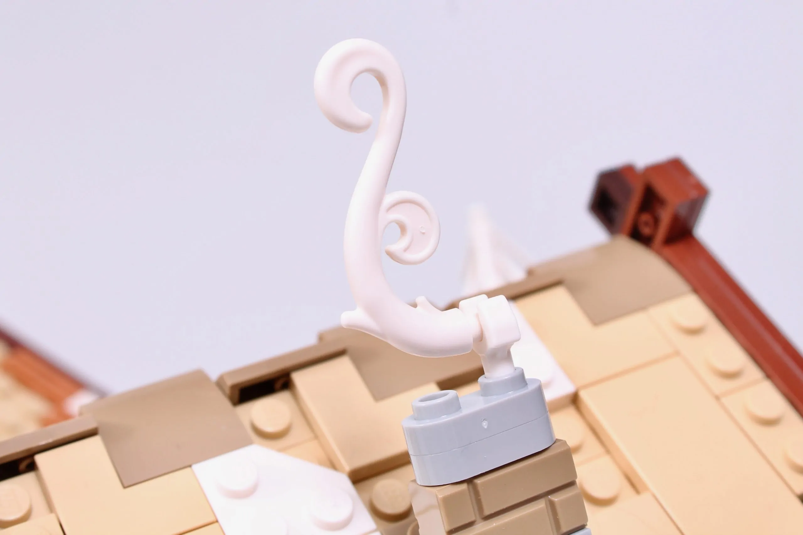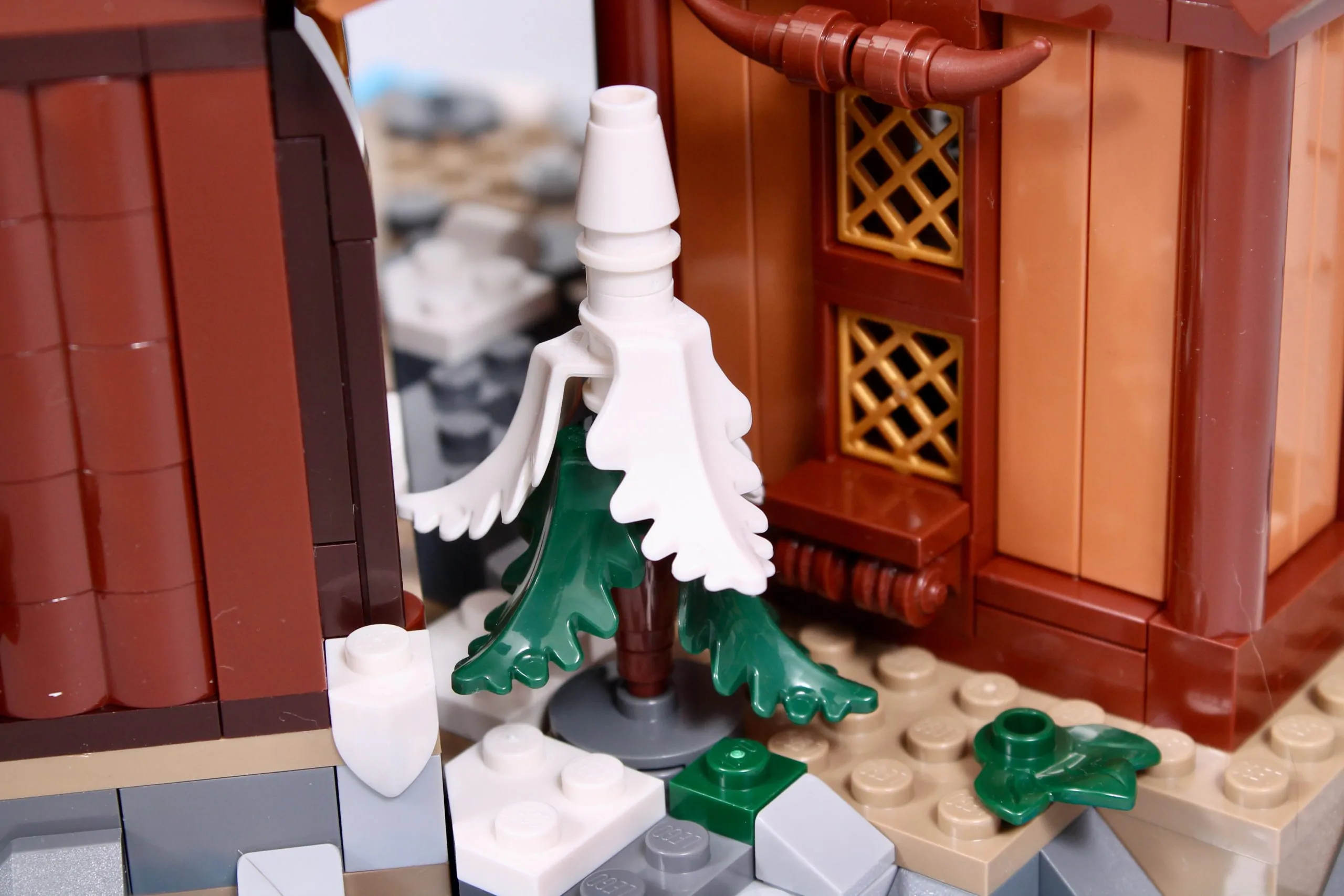 Y eso nunca estuvo garantizado, porque pocos LEGO Ideas Los sets han sido lo suficientemente audaces como para (o más exactamente, tuvieron la oportunidad de) combinar dos presentaciones estéticamente diferentes en un concepto singular. El equipo de diseño ha tratado de satisfacer a todos e, irónicamente, no será para todos: aquellos que no tenían gafas de color rosa para los sets originales de Vikings podrían haber preferido una estética y un enfoque más maduros para un set para mayores de 18 años, pero es difícil no hacerlo. para disfrutar de los detalles, desde el árbol cubierto de nieve construido con trozos de helecho blanco invertidos hasta el hecho de que cada pieza decorada aquí está impresa. (¡Mira mamá, no hay pegatinas!)