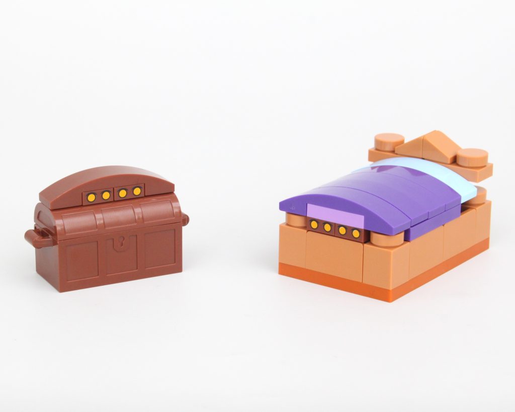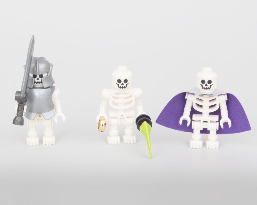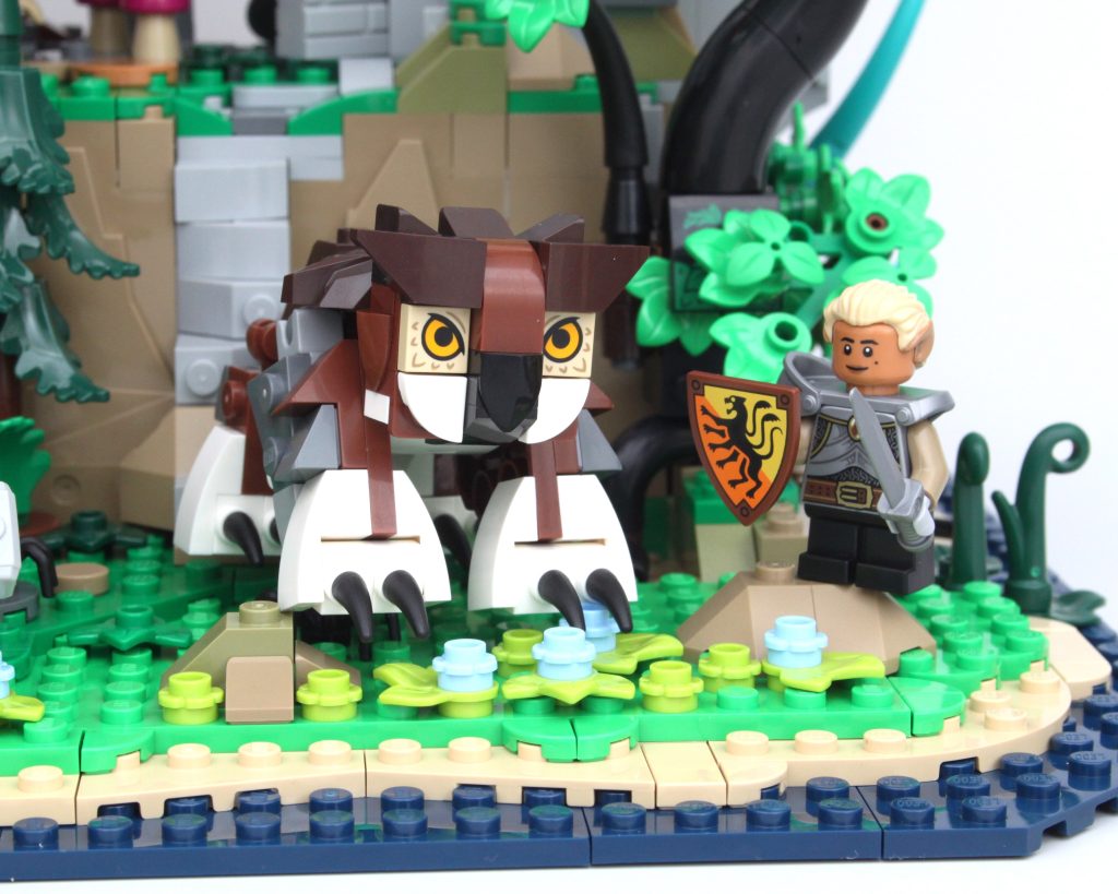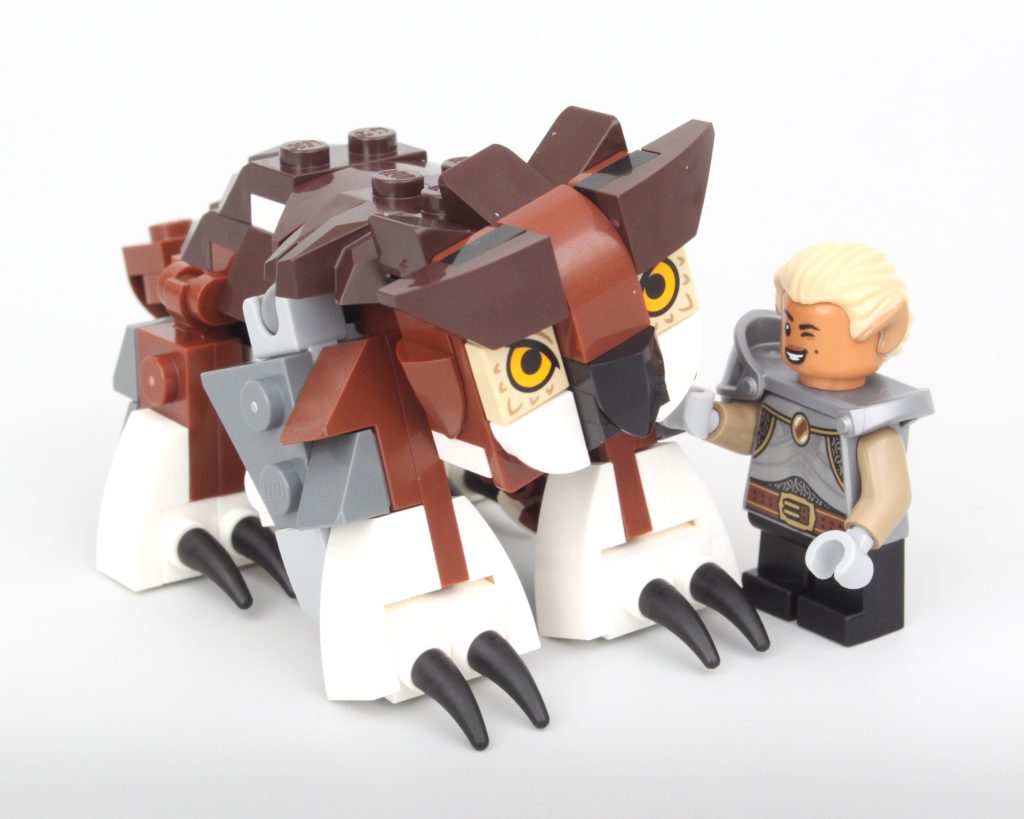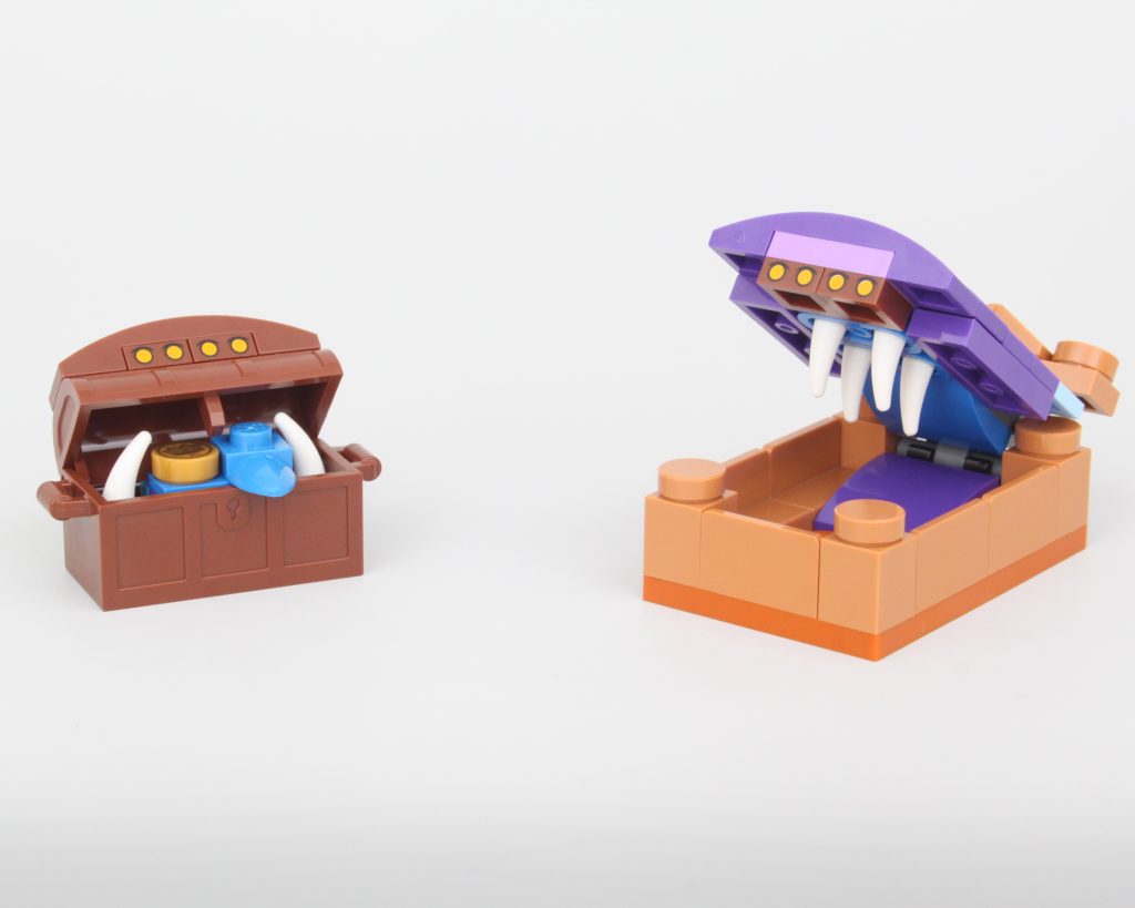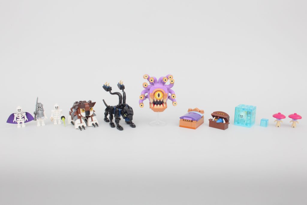 El trío de esqueletos viene completo con botín, incluida una gran pieza de capa, y utiliza el diseño de esqueleto estándar de LEGO: cuando no está roto, no es necesario arreglarlo. Sin embargo, lo mejor del paquete es el Owlbear con su cabeza inclinada y opciones de pose adecuadas, o el par de Mimics que usan ojos impresos disfrazados de cama y cofre.