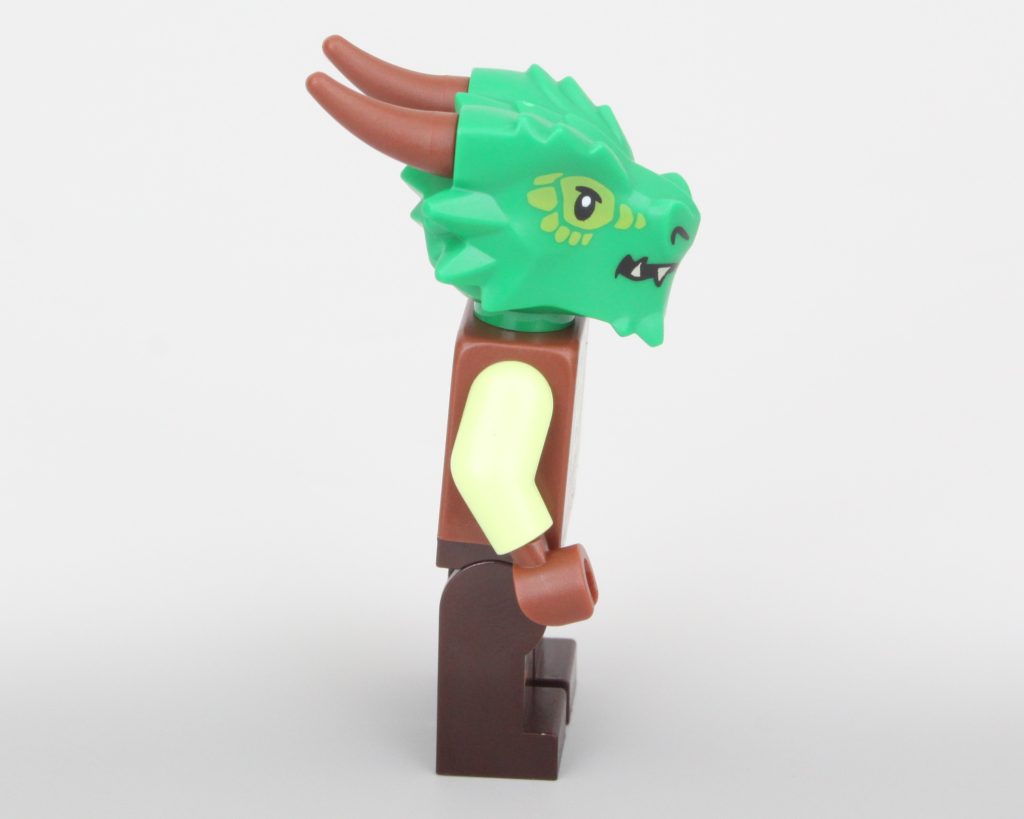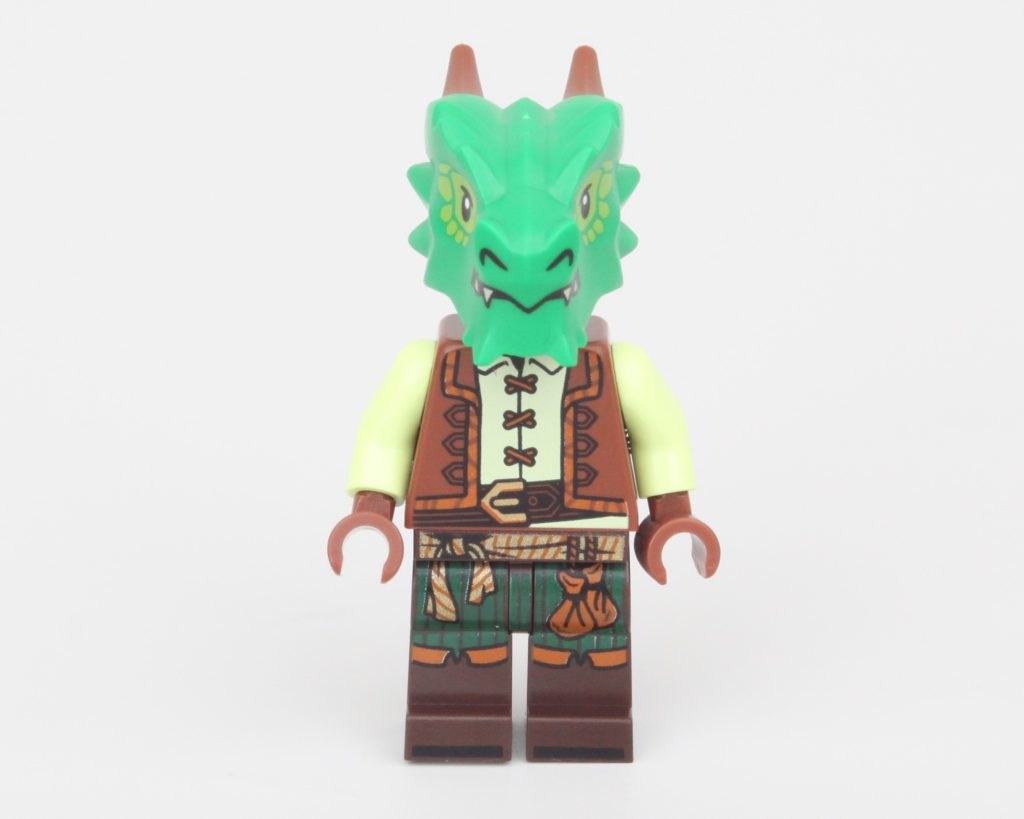 El diseño de Alax es fantástico para un campesino estándar o incluso un bardo y, si bien el torso y las piernas son adecuados para cualquier minifigura, también combinan de maravilla con las escamas verdes de Alax. Alax también hace uso del LEGO VIDIYO elemento de cabeza de dragón y funciona idealmente para un Dragonborn aquí. Es bueno ver que el tema musical continúa indirectamente a través de otras líneas de productos. Tenga en cuenta que está a punto de haber spoilers de la aventura LEGO Red Dragon's Tale.