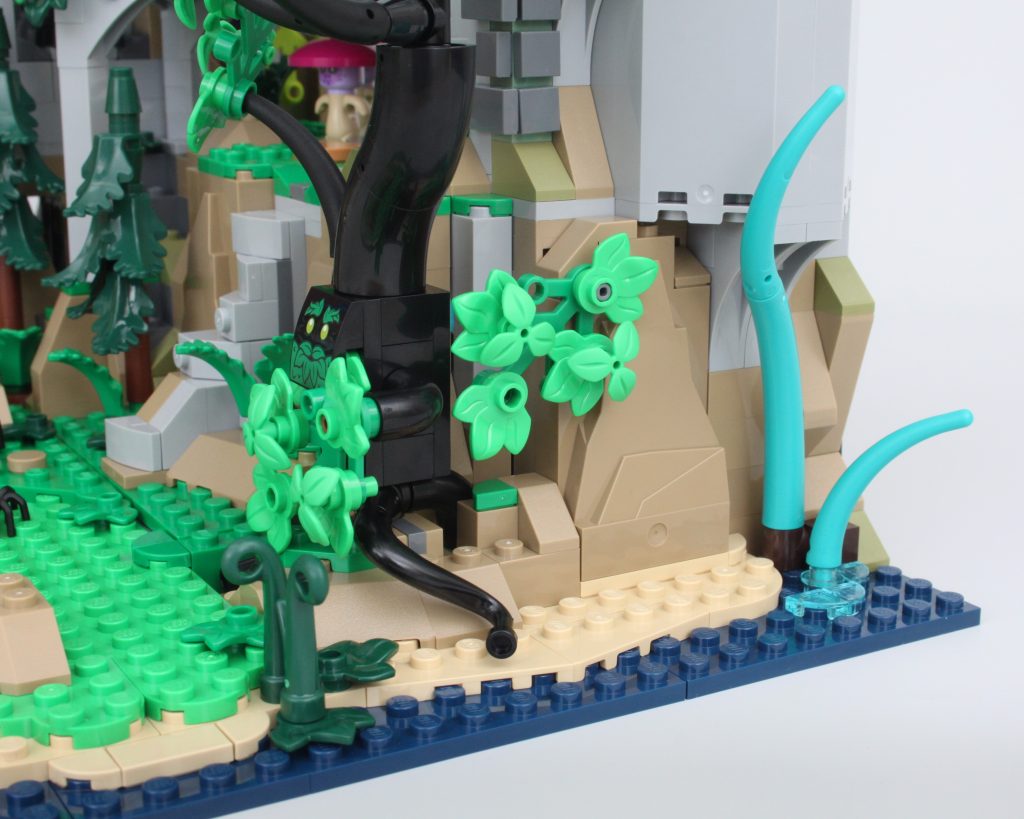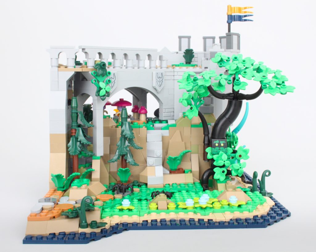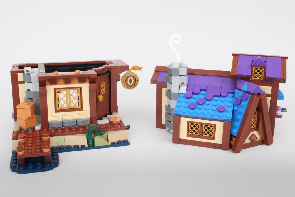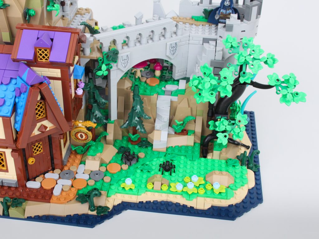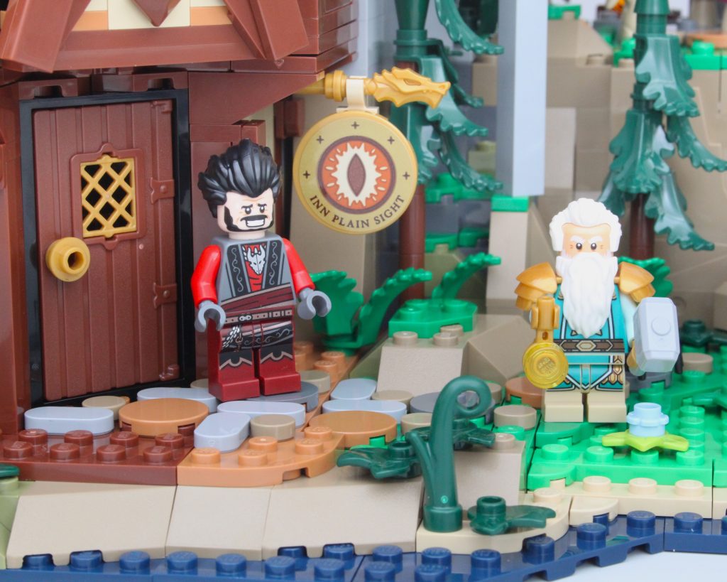 La taberna habría sido adecuada como conjunto independiente y este módulo viene completo con un pequeño muelle, mucha comida y bebida para las minifiguras y una cama completamente segura para dormir; no es necesario rodar para investigar. El exterior de la taberna está bellamente decorado para su tamaño, y la combinación de azul y morado para el techo es única pero adecuadamente caprichosa para un set de Dungeons & Dragons sin sentirse completamente fuera de lugar en una exhibición de LEGO Castle.