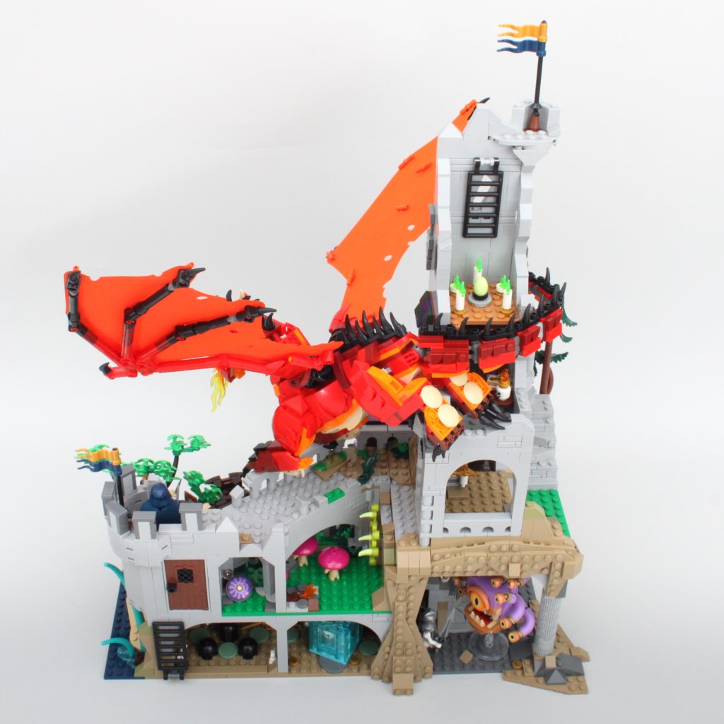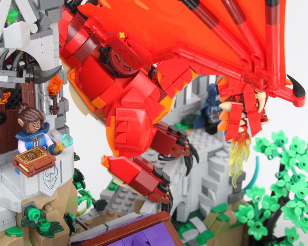 Aparte del problema del cuello del dragón, la construcción en LEGO Ideas 21348 Dragones y Mazmorras: El cuento del dragón rojo es excelente en general, pero sobre todo es adecuado para exhibiciones o poses de minifiguras, poniendo firmemente énfasis en las funciones de exhibición sobre las de juego. Pero claro, D&D tiene que ver con la imaginación...
