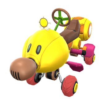 El Wild Wiggler está inspirado en el enemigo amarillo de Mario del mismo nombre, con una flor en la cabeza, además de pequeñas piernas y ruedas moradas. El Landship está basado en un barco pirata de madera, con lámpara incluida, mientras que la bicicleta estándar coincide con su contraparte en pantalla con un esquema de colores rojo, azul y blanco, además del logotipo de un hongo.