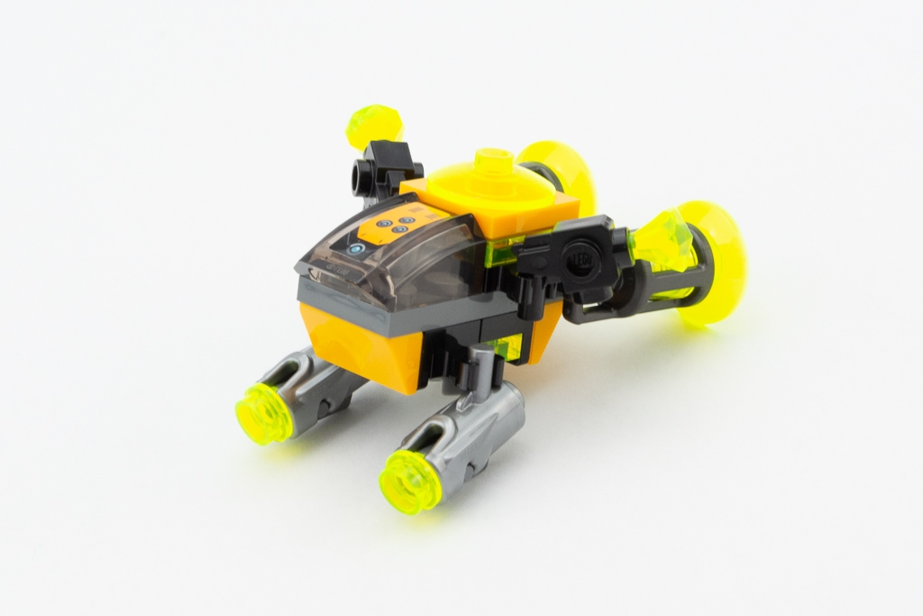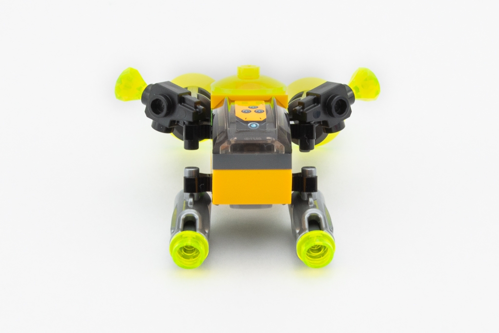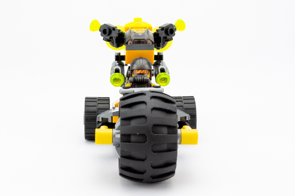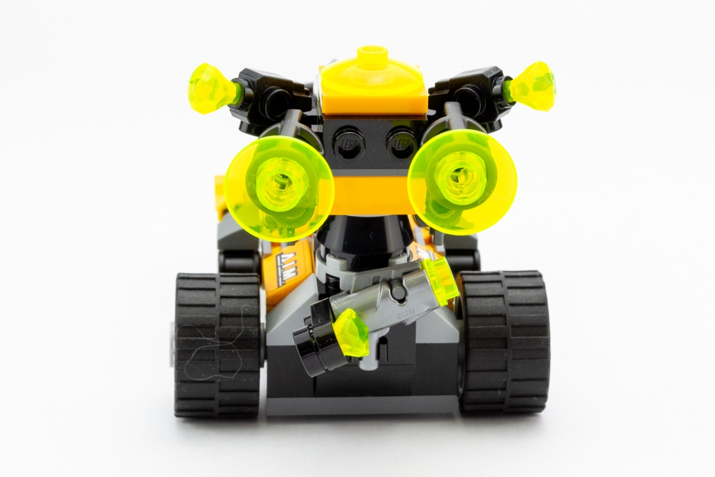 El triciclo es una construcción pequeña y sencilla que presenta un enorme neumático en la parte delantera que hace uso del nuevo elemento de rueda en plata plana (solo disponible en otros dos sets en el momento de escribir este artículo). Puede parecer bastante bien equipado con armas que se agitan en todos los ángulos, pero en realidad la sección superior se revela como un dron controlado a distancia que se puede usar contra nuestros héroes. Es un modelo bien construido como uno que podría encontrar en una bolsa de plástico y hace un uso inteligente de la nueva Harry Potter elementos de linterna para los escapes de combustible. Mi única queja es que el embrague del dron al triciclo se basa en una sola conexión de perno, lo que permite que se desprenda fácilmente.