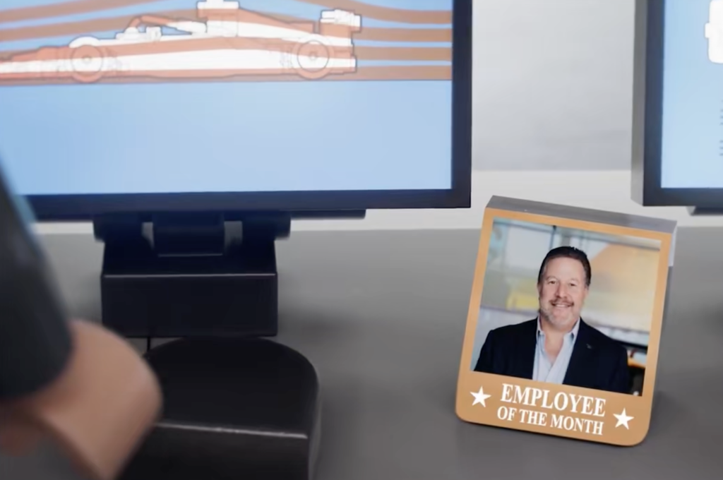 El clip muestra a Oscar aumentando gradualmente la potencia de un túnel de viento construido con ladrillos, hasta reducir finalmente el auto a escombros y el cabello de Lando a un desastre azotado por el viento. Esto está supervisado por una foto del director del equipo, Zak Brown.