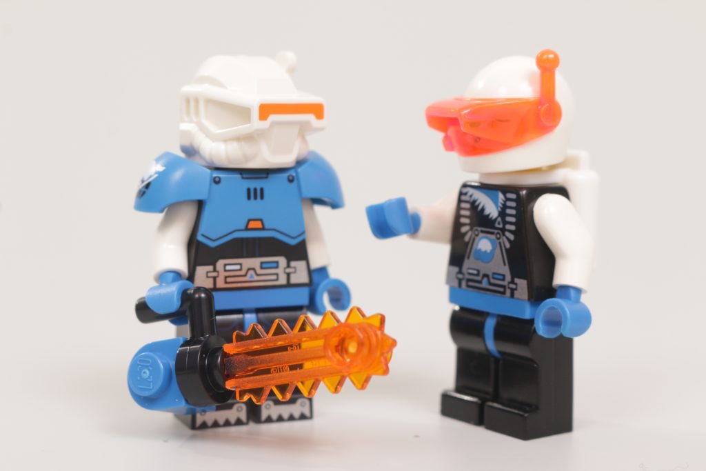 El cabello y la cara rojos se sienten como una llamada directa al cabello rojo y la sonrisa del Doctor Kelvin, uno de los tres. clásico personajes de Ice Planet 2002, incluso si el LEGO Group todavía tiene que confirmarlo rotundamente. Otra devolución de llamada viene en forma de motosierra transnaranja, que no es exactamente una nueva versión del icónico accesorio Ice Planet (originalmente venía en naranja transneón), pero hay al menos una razón tradicional para ello.