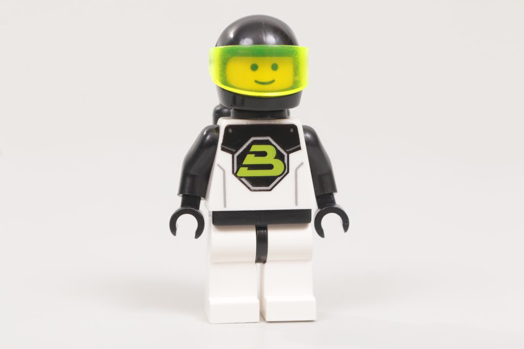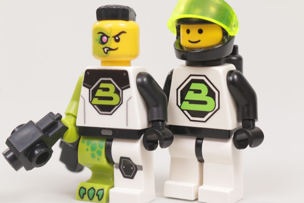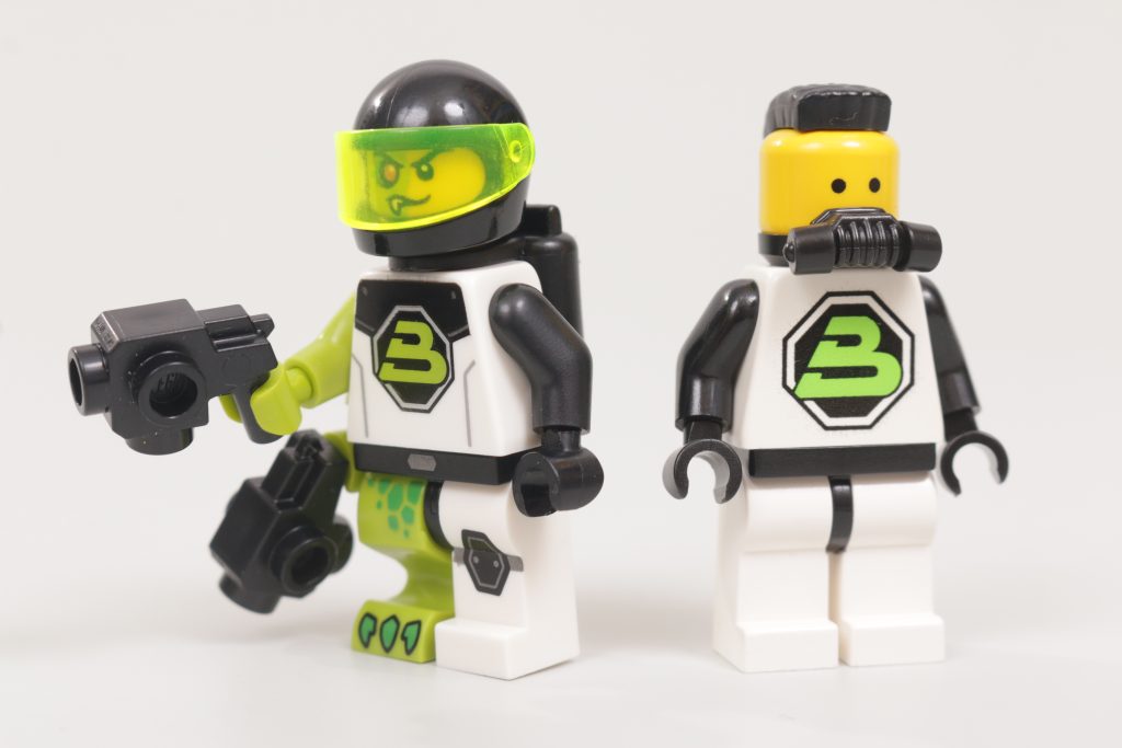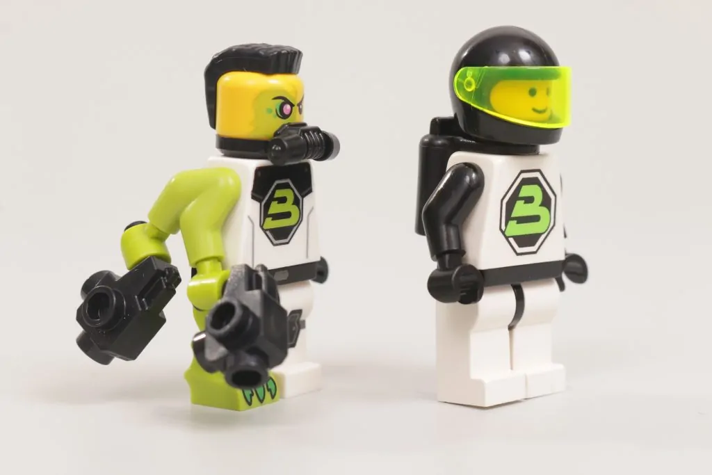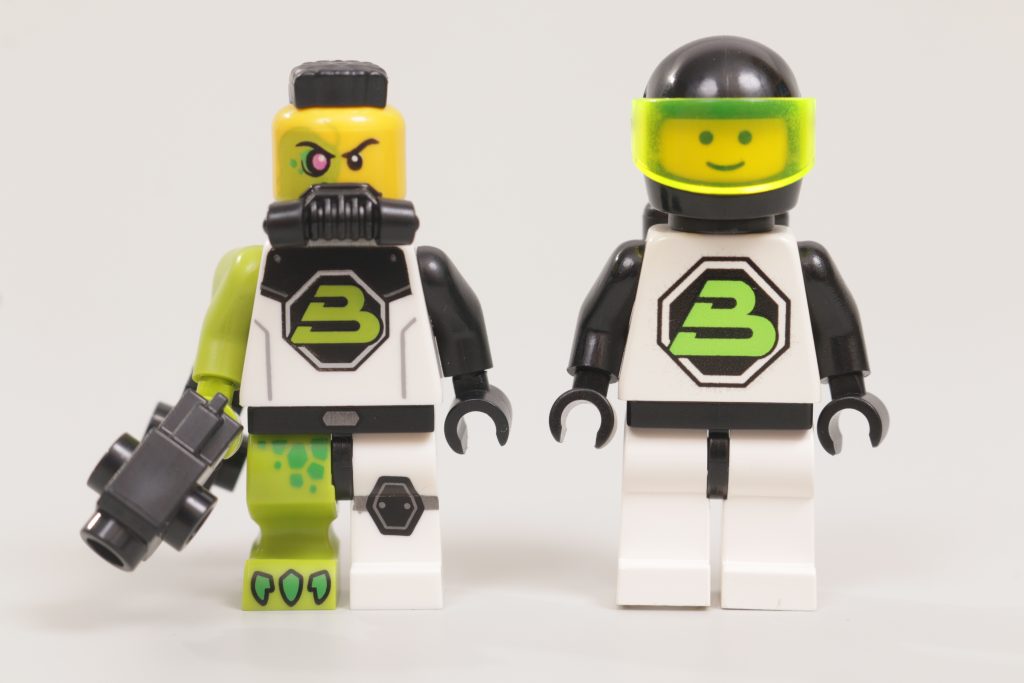 Se trata de una minifigura que, en algunos aspectos, está a un mundo de distancia de sus antecesores, pero en otros está estrechamente vinculada a lo que vino antes: primero en su combinación de colores, que evita con éxito la ausencia del verde transneón en el portafolio moderno de LEGO al dirigir la atención hacia sus reflejos lima, y segundo en su inteligente impresión del torso, que conserva el logotipo de Blacktron II, aunque con un tono de verde ligeramente diferente, pero moderniza la armadura que lo rodea.