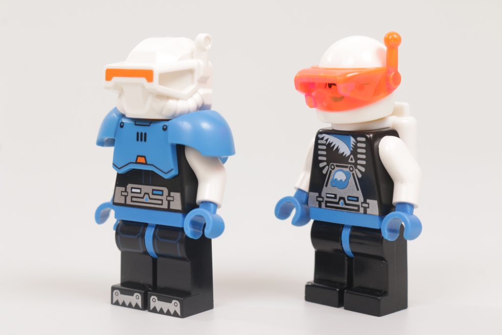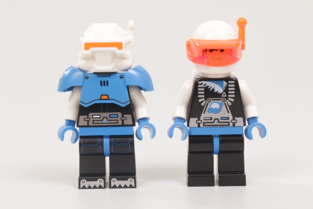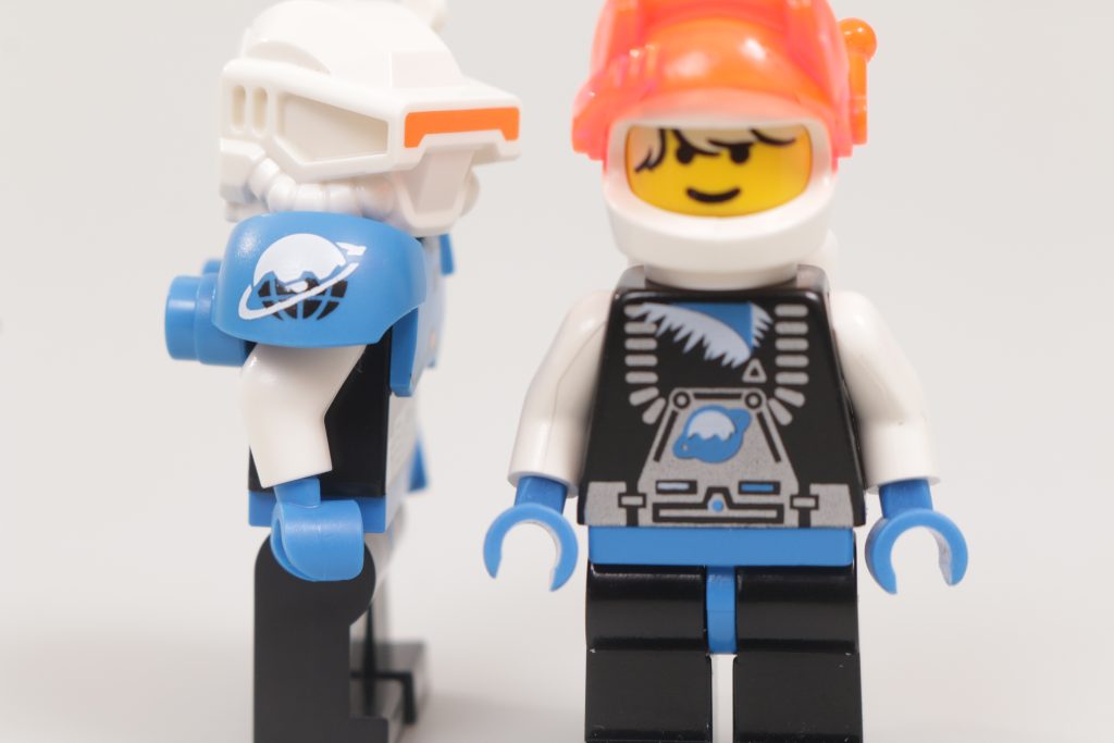 De lo contrario, esta minifigura es sin lugar a dudas Ice Planet: si hay algo en lo que estas tres minifiguras retro redux aciertan es en la estética de cada uno de sus temas originales, independientemente de los detalles. Y mientras Blacktron II y M-Tron sólo tenían minifiguras genéricas para completar sus filas, Ice Planet 2002 disfrutó del lujo de personajes con nombre, uno de los cuales parece haber servido de inspiración directa para 71046 Serie 26 EspacioExplorador del planeta helado.
