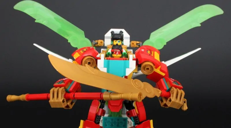 Sin embargo cuando 80041 Jet dragón de Mei está unido a 80040 Monkie KidCombi Mech de 'sEstas opciones de diseño tienen sentido y la longitud del avión permite que el conjunto se mantenga en pie de manera creíble incluso con el peso adicional.