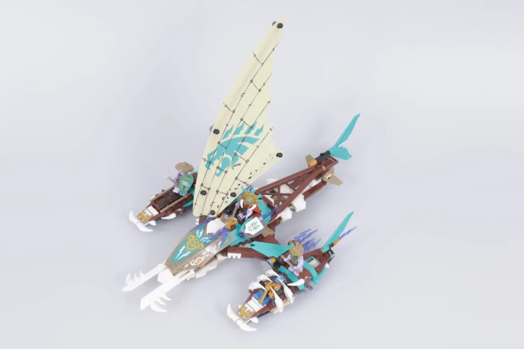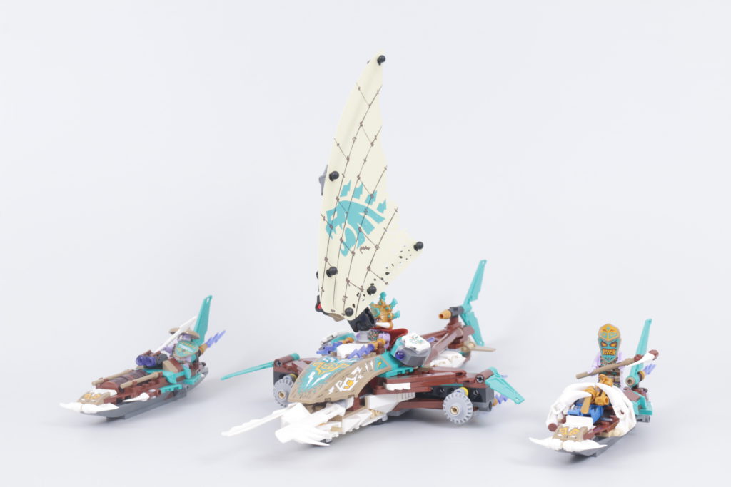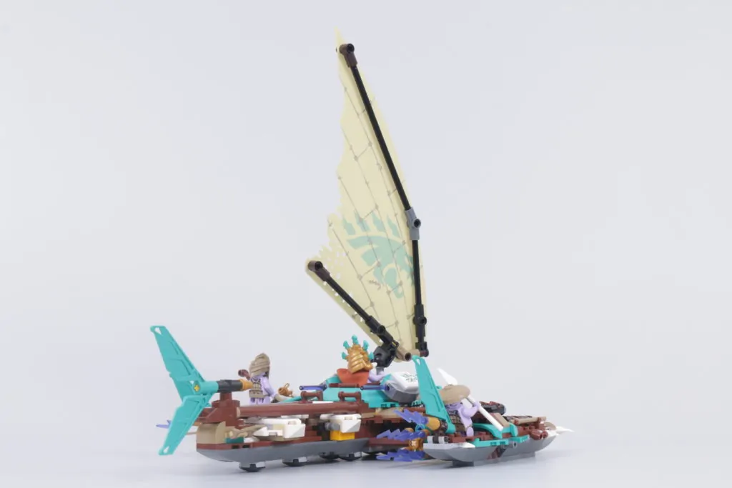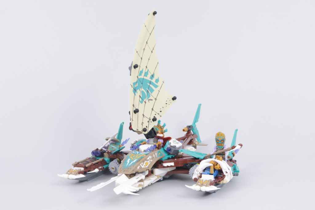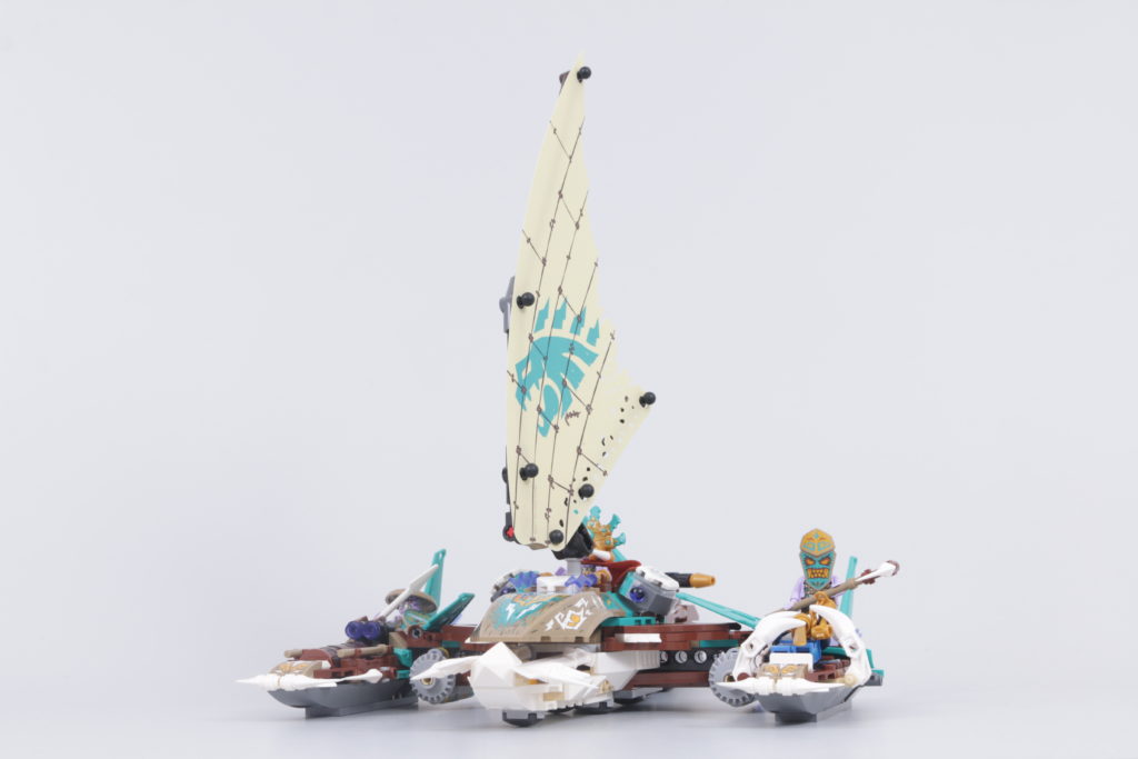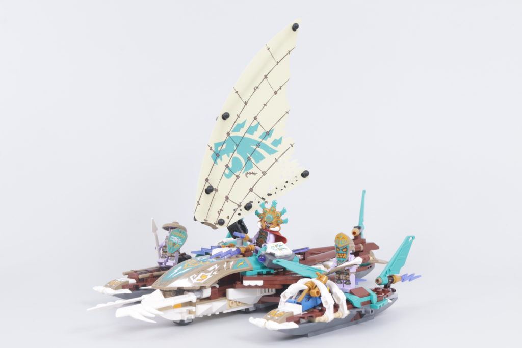 Construido en tal escala y color que solo Ninjago puede manejar, 71748 enfrenta a dos catamaranes entre sí, e incluso sirve como un sutil homenaje a la LEGO El primer catamarán del grupo en 1994.