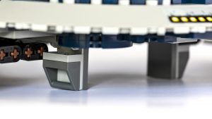 El esquema de colores también se ha actualizado. El gris azulado claro y el azul oscuro son una mejora con respecto a los modelos anteriores. La construcción en sí utiliza piezas y técnicas similares a las anteriores, pero la incorporación de piezas más nuevas, como los conos de helado de color azul oscuro (que aparecen por primera vez en este color), ayuda a agregar más detalles de los que se habían podido lograr en el pasado.