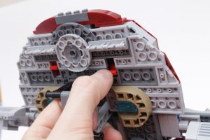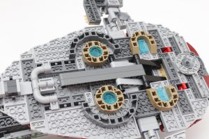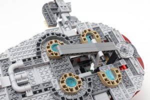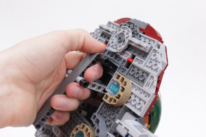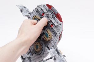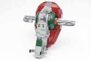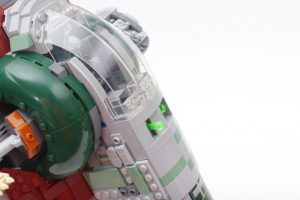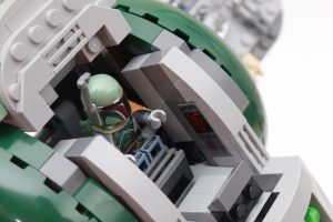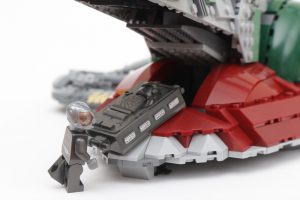 Todo se combina para crear un modelo de apariencia familiar, pero de una manera realmente magistral y, quizás lo más importante para un LEGO Un tema que ahora está entrando en su tercera década, refrescantemente nuevo. Un buen ejemplo es el revestimiento lateral del cuerpo principal del Slave I, que puede parecer simple a simple vista, pero se combina con el dosel inferior de la nave a través de un alero simplemente bien ubicado, conectado y de una manera que mejora significativamente a sus predecesores, pero no como nunca hubiera esperado. Del mismo modo, el ancho de un ladrillo agregado a los pontones verdes oscuros está técnicamente construido utilizando la técnica SNOT, pero describir lo que haces con esas pendientes, placas y otras partes que no arruinaremos mencionando como "Studs Not On Top" parece un término demasiado generalizado y simplificado.