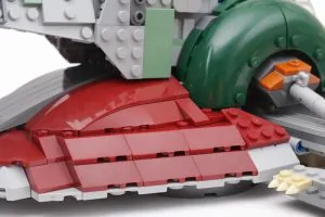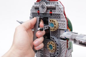 Hay elementos para poner esto LEGO Conjunto de componentes de construcción del esclavo I. La carcasa principal de la nave está construida en dos partes, que incluye un cuerpo principal que da la sensación de estar hueco, antes de que se añadan lentamente por separado los módulos laterales, los paneles, las alas y varios contornos. La forma en que estos últimos componentes se conectan a la estructura principal es donde lo que de otro modo parece una carcasa estándar y pequeña de repente adquiere una forma mucho más compleja.