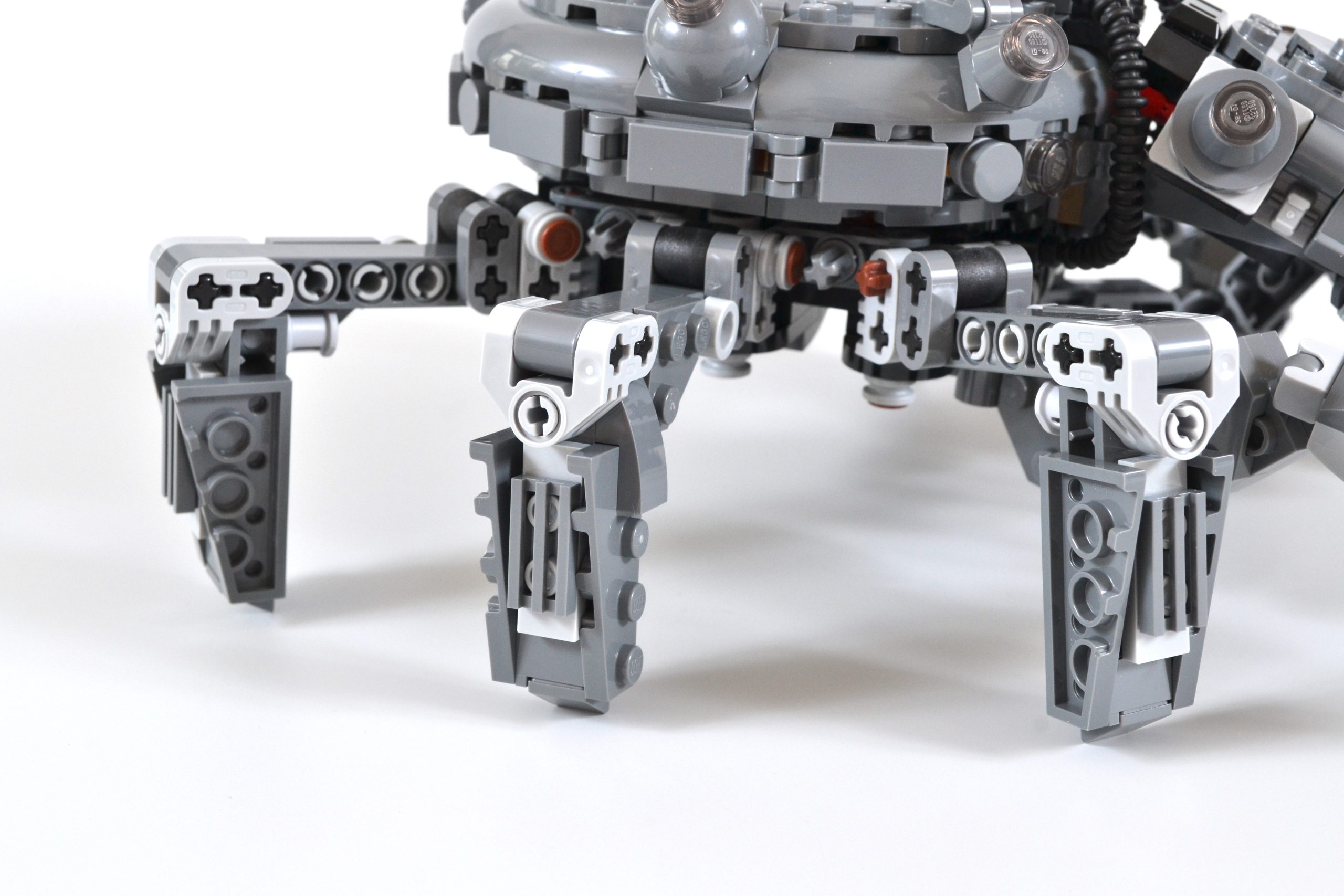 El verdadero problema con el LEGO Star Wars El modelo viene al ensamblar las seis patas del mech. Estos son complicados, repetitivos y requieren mucho tiempo para ensamblarlos, y las extremidades completas no ofrecen ningún movimiento ni opción de pose de exhibición. Luego, las patas completas se unen al cuerpo del 75361 Spider Tank con color marrón. Technic pines y básicamente están bloqueados en su lugar, lo que parece un verdadero fracaso para el set.