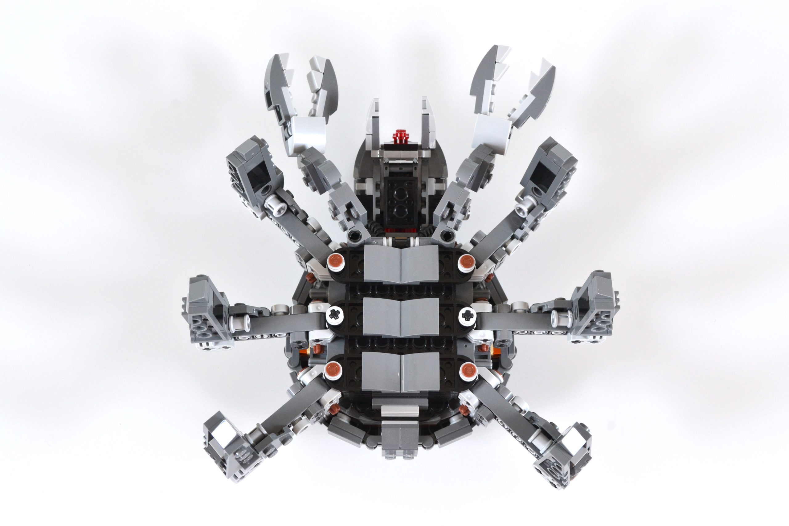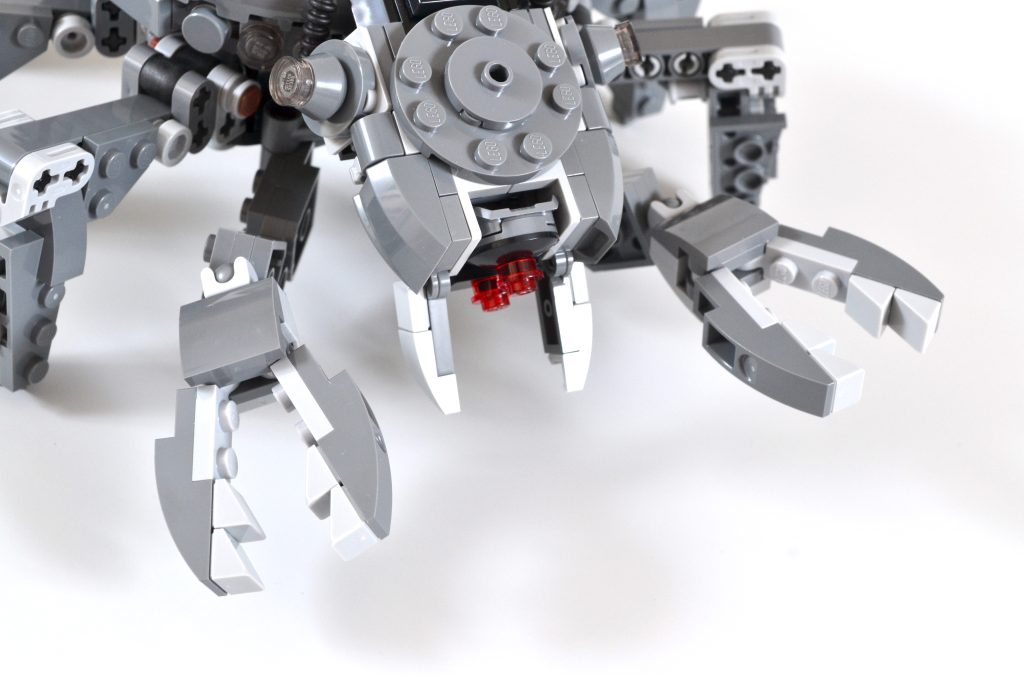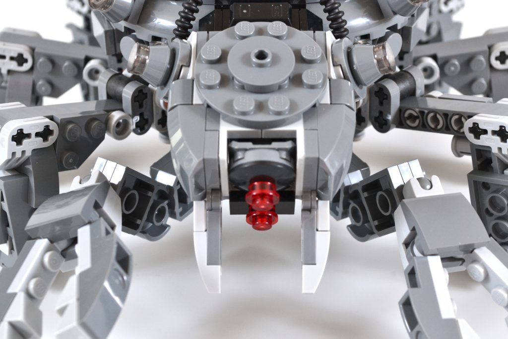 En el lado positivo, hay algunos aspectos destacados menores que vale la pena mencionar que evitan que el 75361 Spider Tank pierda por completo su objetivo. Los cañones montados en la parte trasera ofrecen un pequeño grado de funcionalidad y se pueden mover hacia arriba y hacia abajo, duplicándose como una escotilla para ocultar la cabina del robot. Las piezas de tubos flexibles que conectan la cabeza de la bestia con su cuerpo añaden una cualidad cyborg adecuada a la criatura y las articulaciones esféricas permiten que sus garras de agarre articuladas tengan un movimiento limitado.