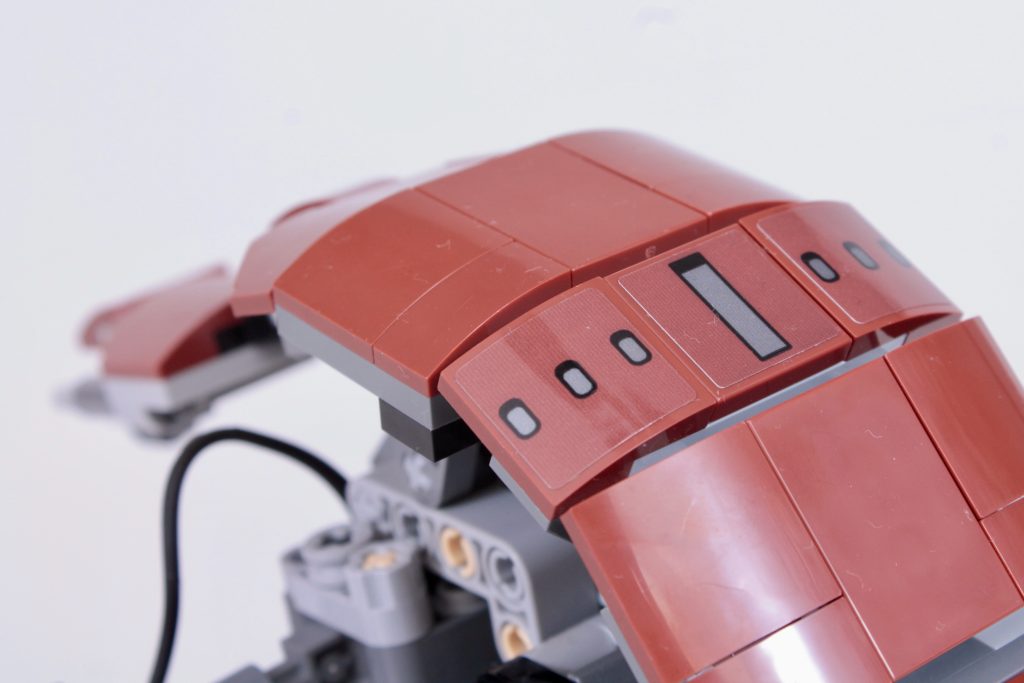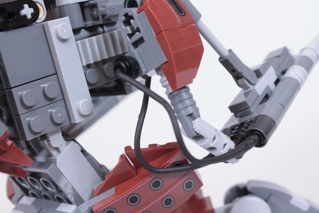 También verás algunas opciones de elementos divertidos, lo cual no es necesariamente un hecho en una construcción mecánica como esta, donde casi todas las piezas son funcionales en lugar de decorativas. Los aspectos más destacados incluyen las piezas de lápiz labial que dejan salir un poco de rojo de las antenas de sus sensores y los látigos utilizados como cables en sus brazos (aunque esos son los únicos elementos complicados en lo que de otro modo sería una construcción robusta).