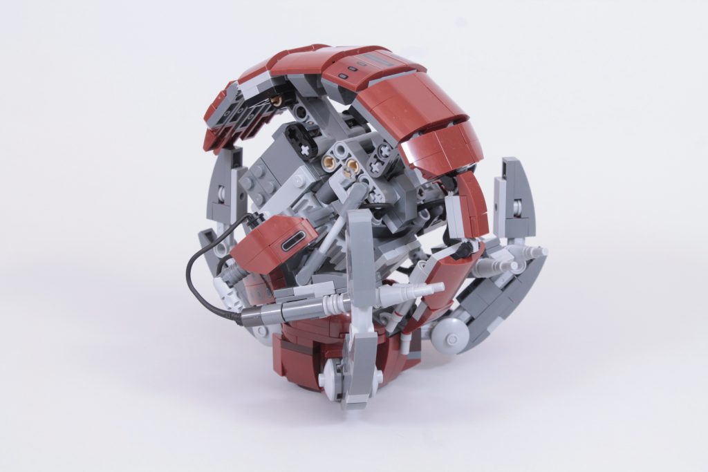El modelo 75381 Droideka viene acompañado del primer LEGO a escala de minifigura. Star Wars Droideka desde 2015, lo que representa otro intento de los diseñadores de perfeccionar este droide utilizando exclusivamente piezas existentes. Pero presumiblemente se vio obstaculizado por la necesidad de ser relativamente estable incluso en un set para mayores de 18 años (hay diseños más precisos por ahí, aunque son un poco más frágiles en algunos lugares), realmente no puede compararse con su hermano mayor.