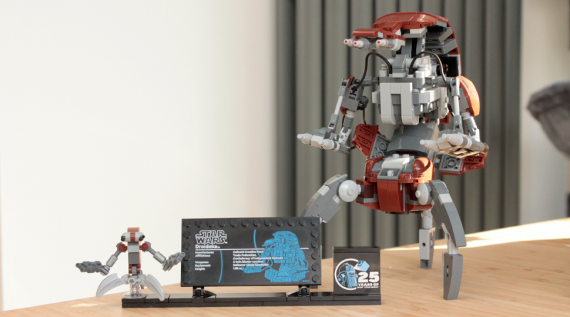 El Droideka 75381 se ensambla bastante rápido en total, con solo 583 piezas que conforman la construcción principal, soporte de exhibición (con LEGO del 25.° aniversario) Star Wars ladrillo) y un Droideka a escala de minifigura (más sobre esto más adelante). Pero hace un gran trabajo al inyectar algo de variedad al LEGO. Star Wars crear experiencia, incluso cuando la paleta de colores es tan monótona como te imaginas, mezclando Technic y System juntos de una manera que se siente fluida y natural para un droide construido con ladrillos.