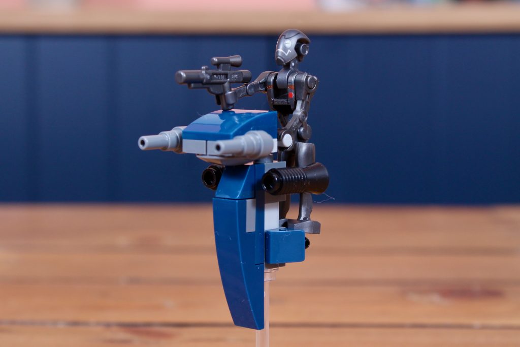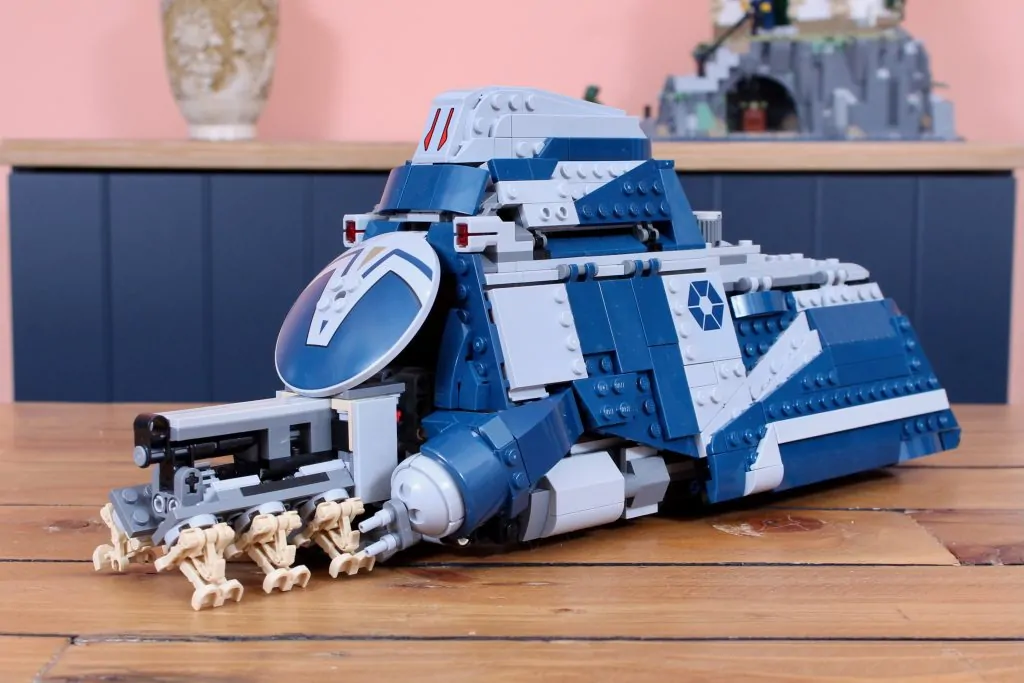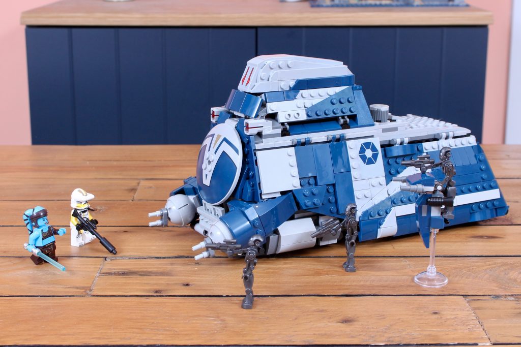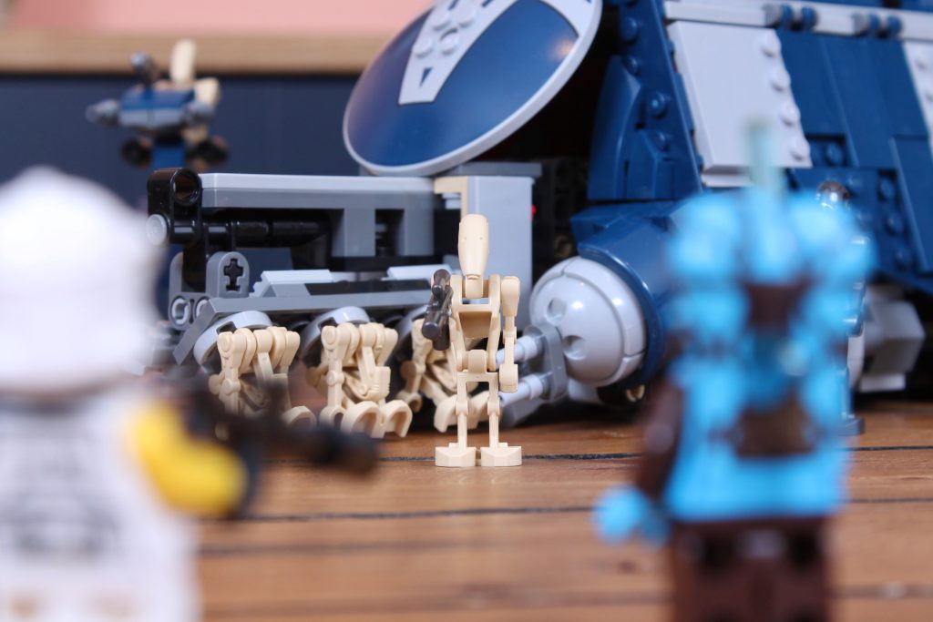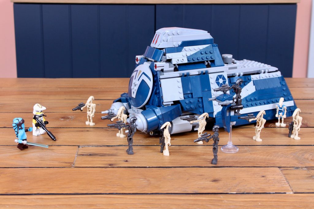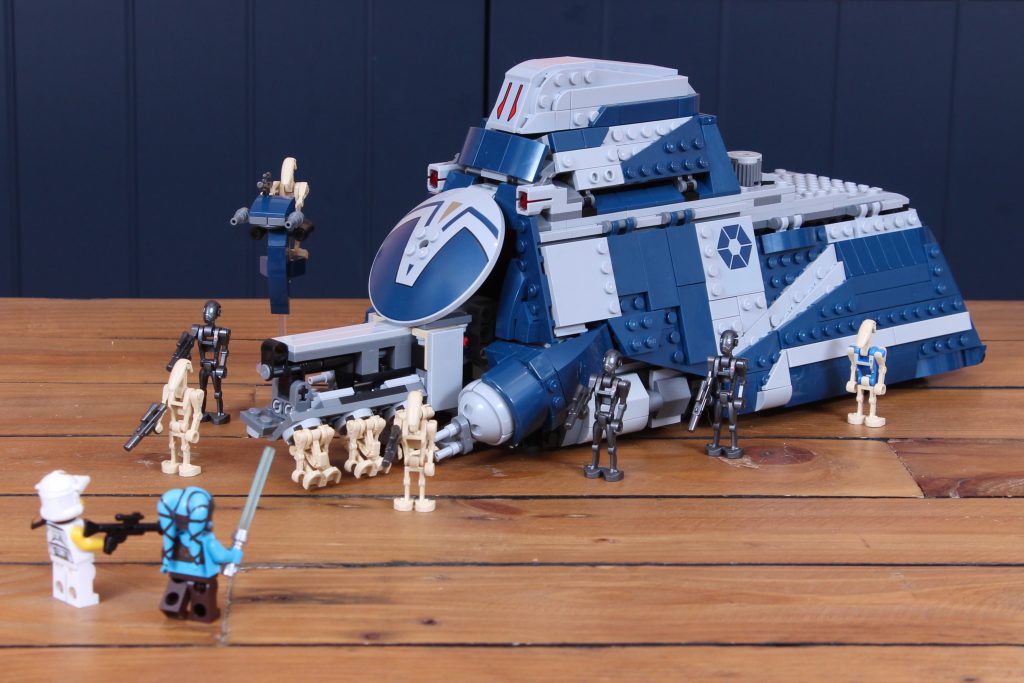 Pero el problema es que este set tiene un precio similar al de incluir muchas más minifiguras estándar, que son inherentemente más valiosas que los droides, así que un par de soldados clon del 327.º Cuerpo Estelar (aunque fueran repetidos del pack de batalla de esta oleada) habrían mejorado considerablemente su valor. Así pues, nos quedamos con un modelo reducido que cuesta lo que cabría esperar de una versión moderna del 7662 MTT (en tamaño y alcance).