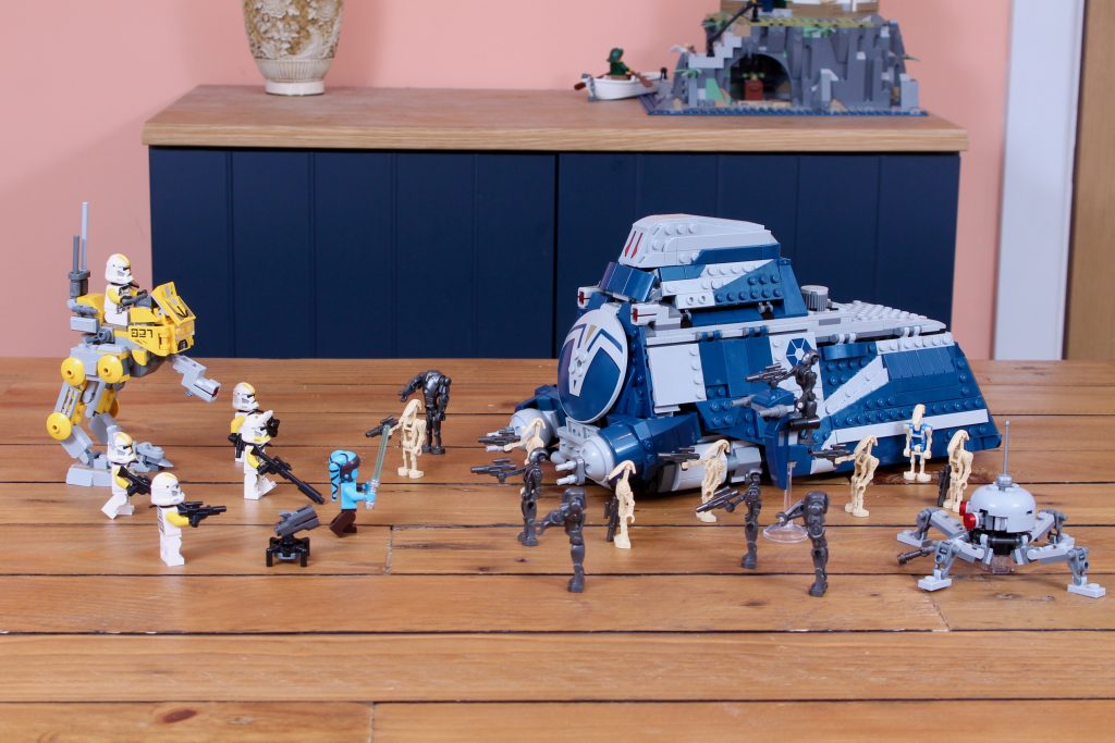 Ya existe un plan para ello. 75337 AT-TE Andador, un set que el LEGO Star Wars El equipo se ha descrito previamente como un paquete de batalla de gran tamaño, e incluye al comandante Cody y tres soldados clon del 212 (o, para un ejemplo más reciente, 75413 Juggernaut de la República Incluye al comandante Bacara y tres marines galácticos).