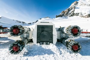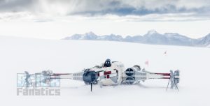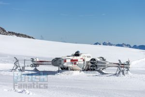 El modelo de 10 por 10 metros sentado en la nieve recuerda cuando Luke Skywalker está junto a su Ala-X en el planeta helado Hoth en Star Wars: El imperio Contraataca.