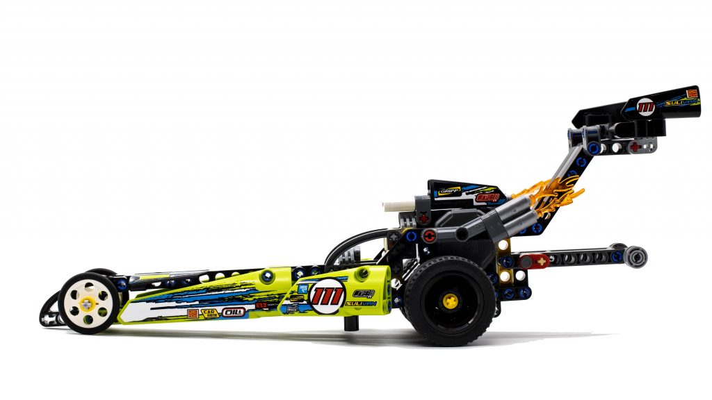 Como ocurre con la mayoría de los conjuntos Technic, se aplican pegatinas en los distintos paneles, que añaden muchos detalles y realmente mejoran el aspecto final del vehículo. El diseño final se ve fantástico y el dragster se siente como el auto grande y poderoso que es. La combinación de colores verde lima y negro parece muy llamativa y, en general, es un modelo muy agradable de construir.