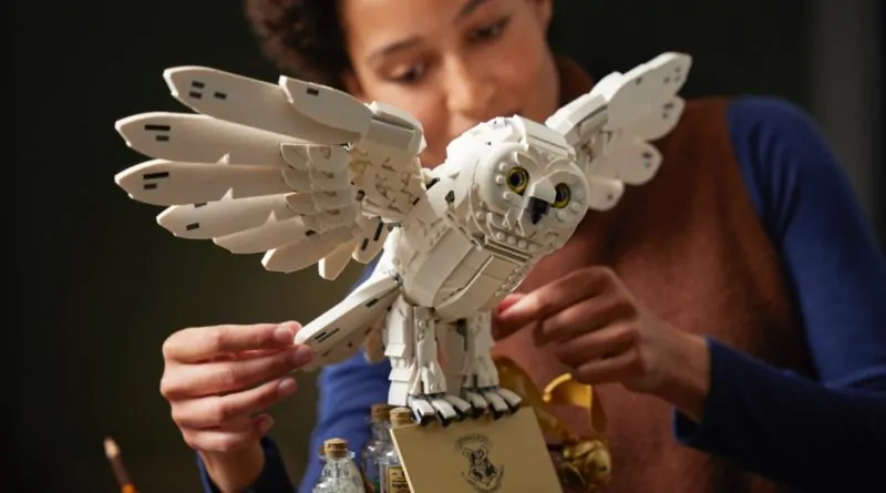 Para Hedwig, se incluye el ladrillo especializado del búho con alas desplegadas. Se puede encontrar en sets como el 75980 Ataque a la Madriguera.