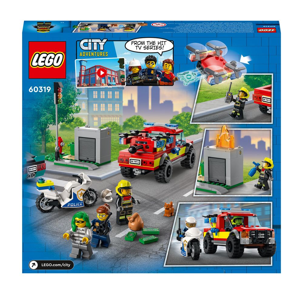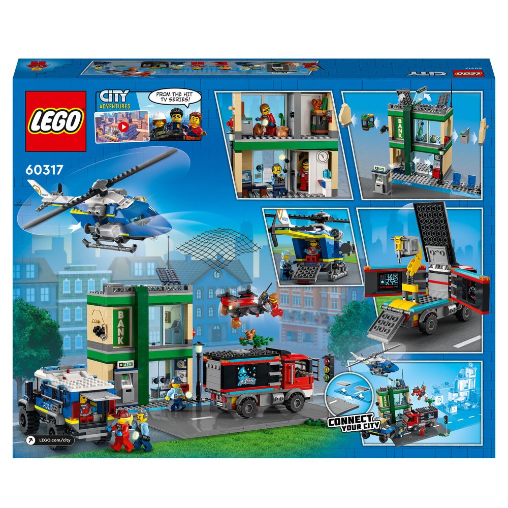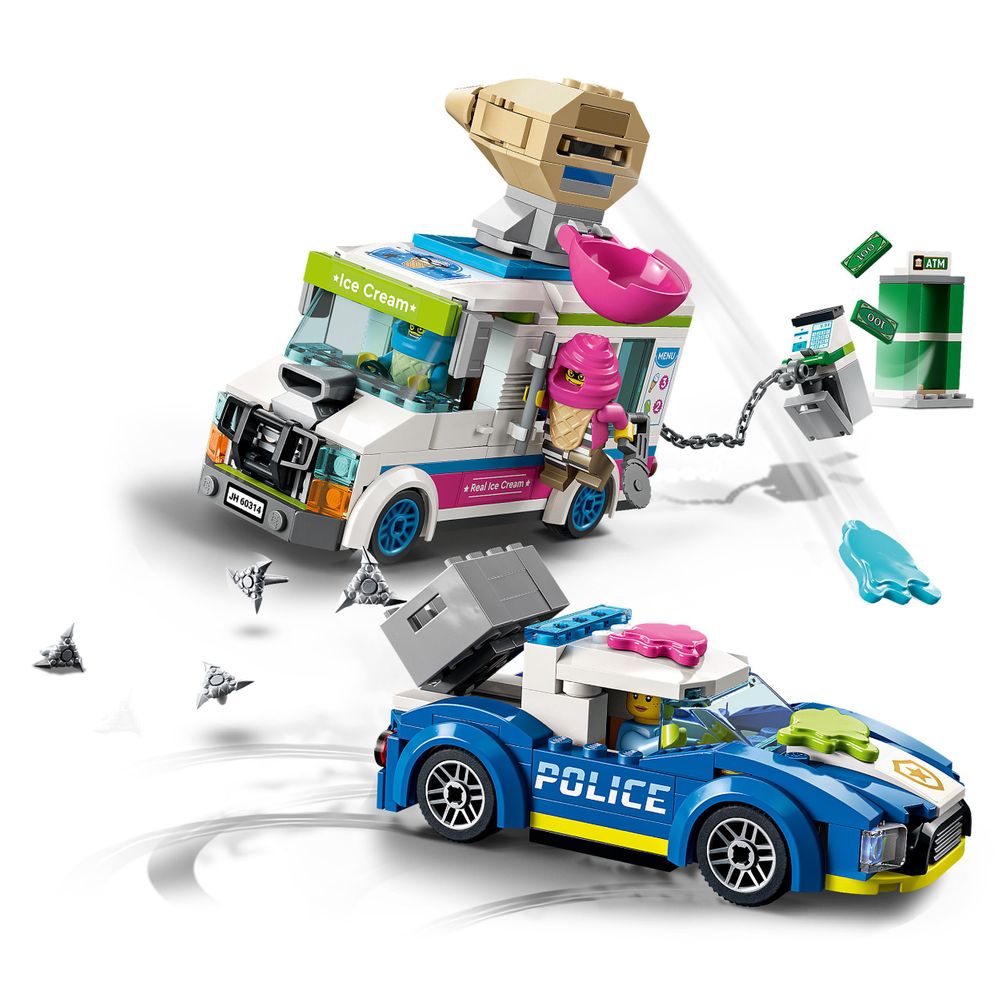 Es una mezcla diversa de decorados para CIUDAD tema, que anteriormente se ha concentrado en subtemas específicos a través de oleadas, incluida la policía y los bomberos. Ambos temas están en juego aquí, junto con una amplia variedad de otros vehículos, edificios y minifiguras, incluida una furgoneta de helados conducida por un par de ladrones llamados creativamente 'hielo' y 'crema'.