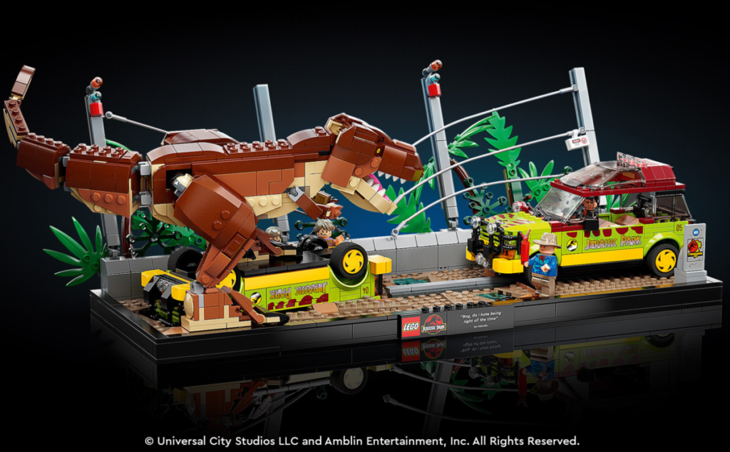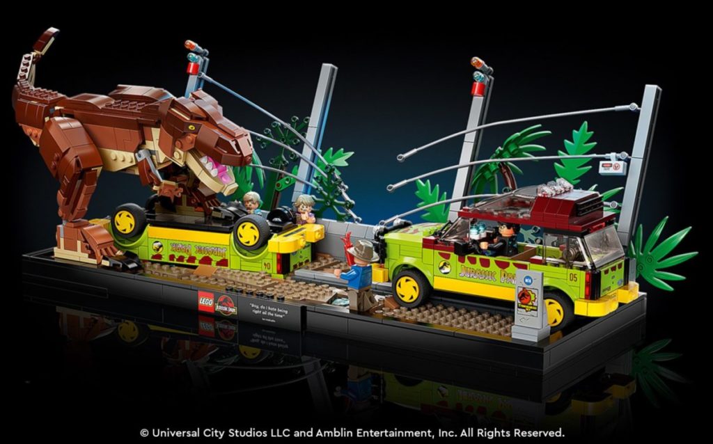 LEGO 76956 Jurassic Park T. rex Breakout ha sido revelado oficialmente en las redes sociales, ofreciendo otro ángulo del dinosaurio y Ford Explorer.
