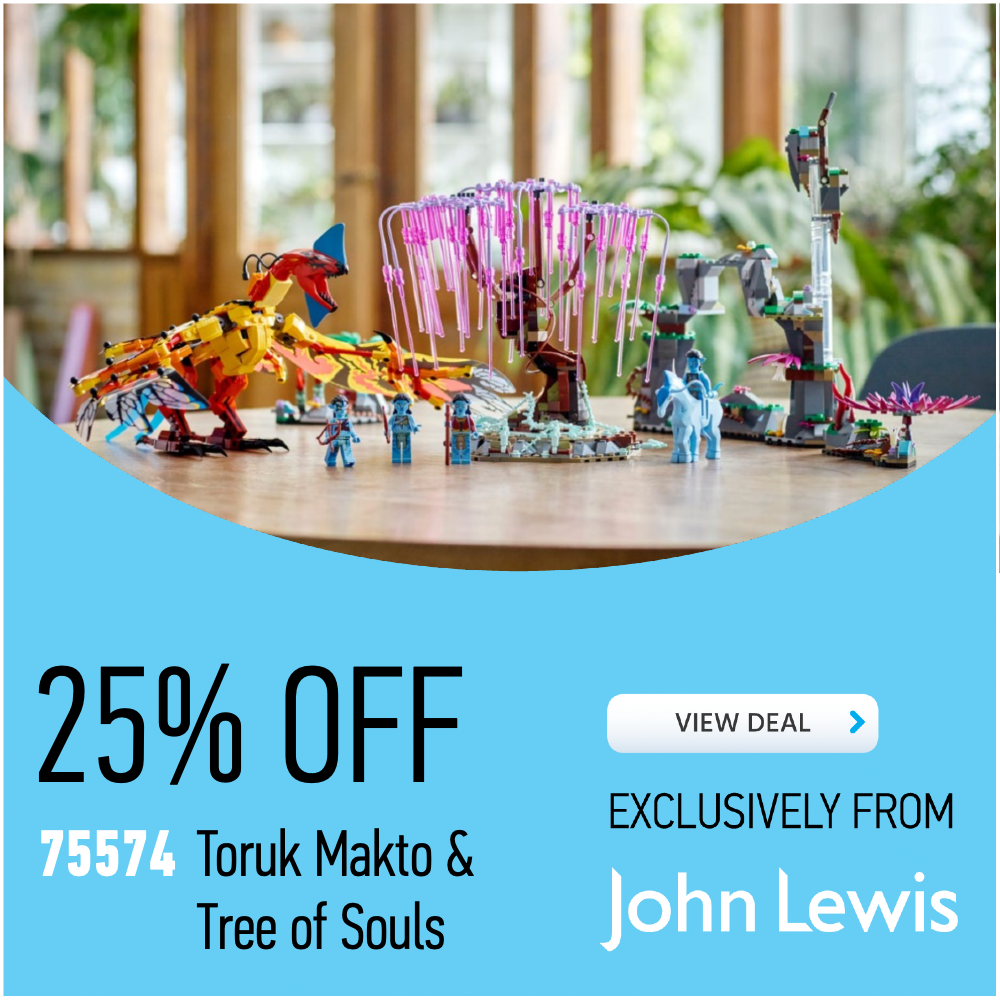 Encabezando la lista están dos de los conjuntos más populares de John Lewis. Ambos exclusivos para el minorista, 10297 Hotel boutique y 21325 Herrero medieval disfruta ahora mismo de un 25% de descuento sobre su PVP. Lo mismo va para 60337 Tren de pasajeros expreso y nuevo set LEGO Avatar 75574 Toruk Makto y Árbol de las Almas.