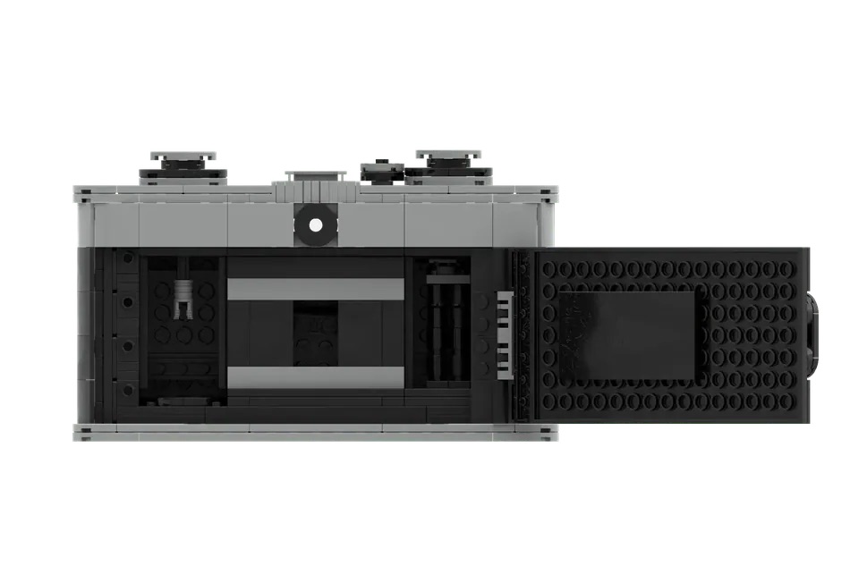 De Zung92 LEGO ZH1: cámara de película de 35 mm funcional y en funcionamiento Es una cámara de película de 35 mm completamente funcional que utiliza únicamente las cámaras existentes. LEGO Piezas, con una abertura trasera que revela el funcionamiento interno. El diseñador se esforzó al máximo para que la construcción se desarrollara en la época adecuada, incluyendo incluso el logotipo de LEGO de 1934.