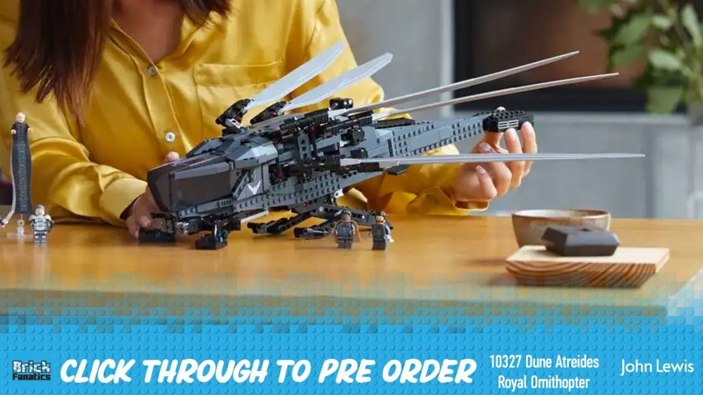 La primera (y única hasta ahora) Duna LEGO El set se lanza en unos días y está listo para la llegada de la película secuela el 1 de marzo. Puede asegurar su copia de 10327 Ornitóptero real Dune Atreides y garantizar la entrega el 1 de febrero de 2024, reservando el Iconos de LEGO colocado con John Lewis.