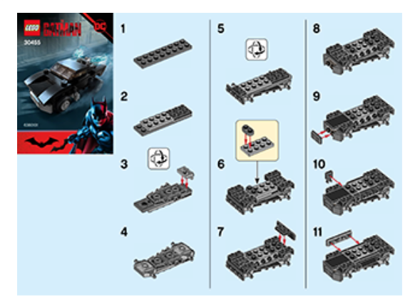 Sin embargo, todavía quedan un puñado de bolsas de polietileno de 2022 que aún no han llegado. Éstas incluyen 30443 Spider-Man Batalla del puente, 30432 The Turtle Beach y 30455 Batimóvil. Todos estos conjuntos han aparecido en la tienda en línea oficial en la sección Instrucciones de construcción, lo que nos da una idea de cómo se construirán.