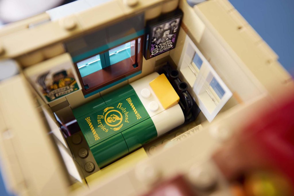 En la habitación de Ginny y en la de Ron se muestran dos equipos de quidditch: las Holyhead Harpies y los Chudley Cannons. Esperemos que esta rivalidad familiar no se salga demasiado de control.